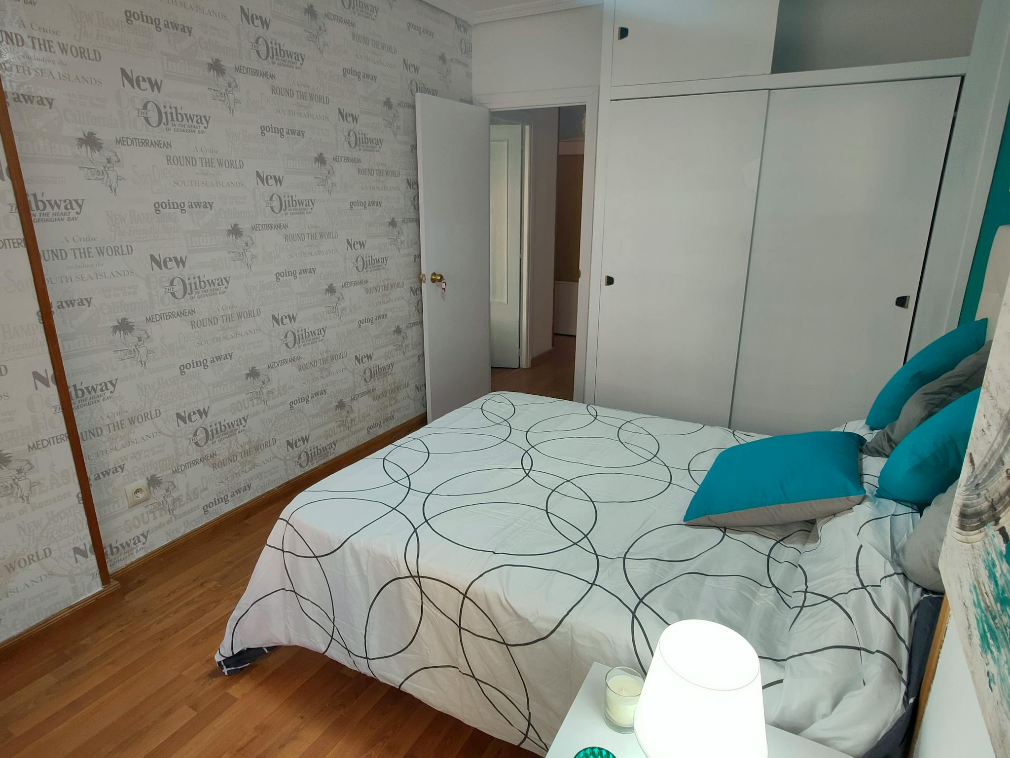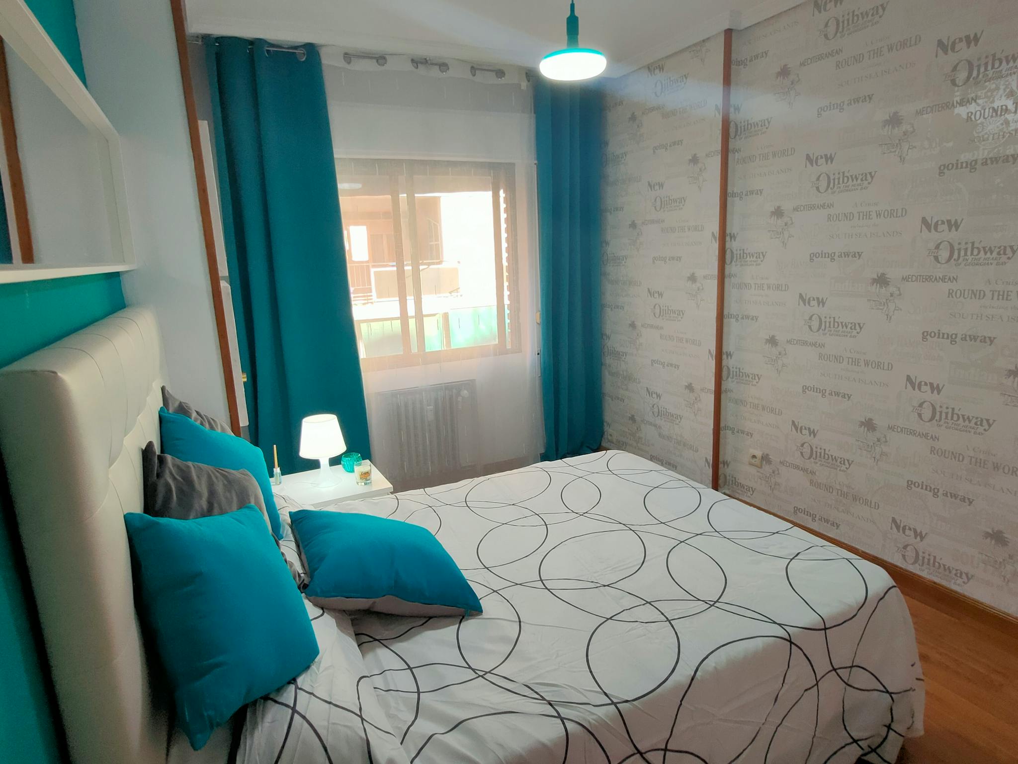 The bedroom in this 6-room apartment on Alcalá de Henares, Madrid, offers a cozy retreat within a vibrant neighborhood. Furnished with essential amenities, the bedroom features a comfortable bed for a restful night's sleep, a spacious desk perfect for studying or working, a wardrobe to neatly store belongings, and a bedside table for added convenience.