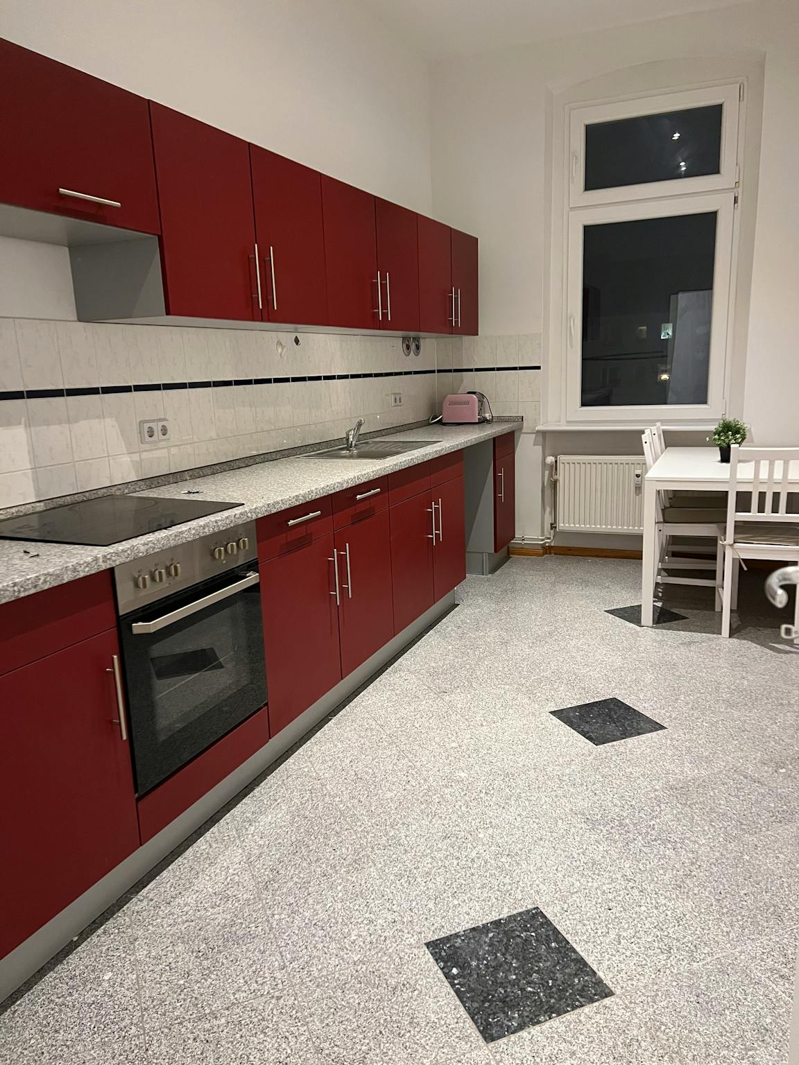 Die Wohnung befindet sich im 3. OG eines Mehrfamilienhauses und besteht aus 2 großen Zimmern mit Balkon, Bad mit Fenster und Badewanne und einer großen Küche.