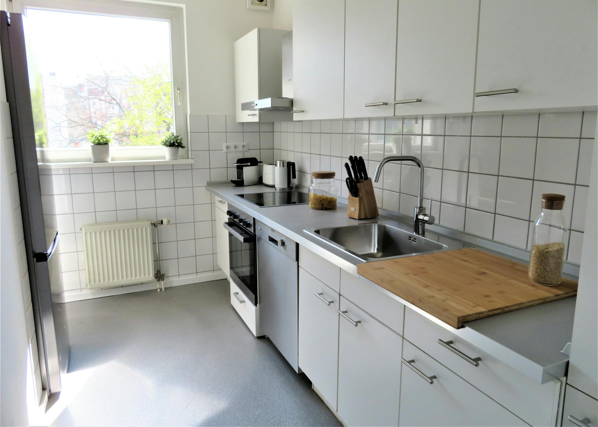 In one of the most sought after locations in Berlin, the apartment is located in a quiet and green courtyard. The quality of the apartment is its spectacular location around the corner of the famous Bergmannstraße. The area is characterized by neighbourhood shops (Bergmannstraße etc.), cafés, pubs, discos and restaurants. The connection to the public transport network is excellent. Subway and bus stations are nearby.