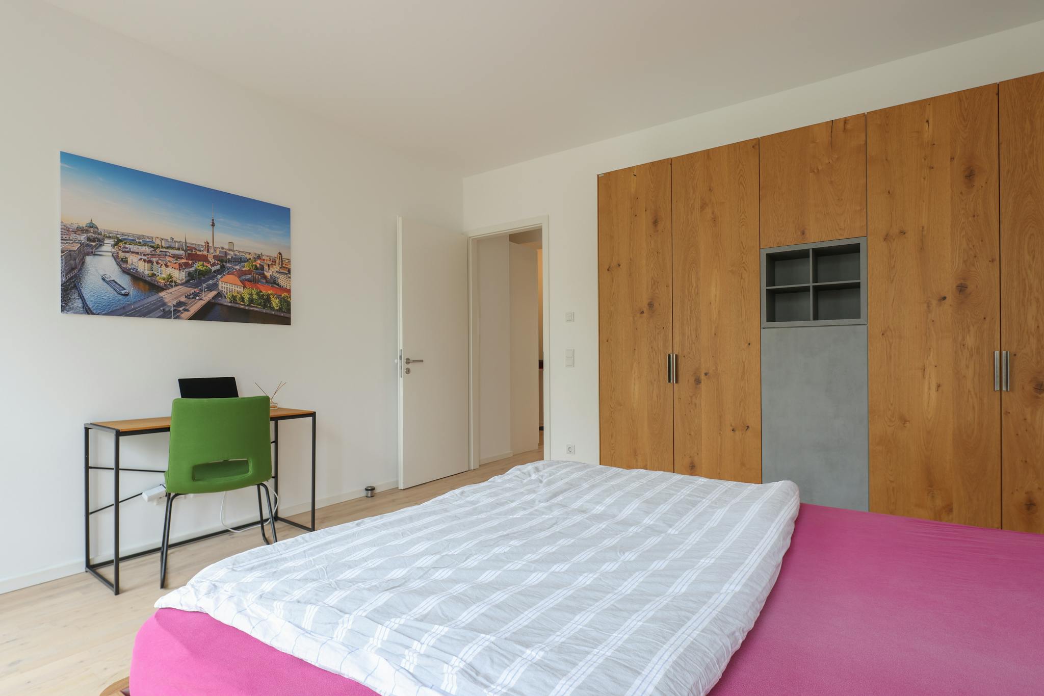 Location: Surrounded by water, the Stralau peninsula lies between the Spree and Rummelsburg Lake - an idyllic oasis of peace that offers seclusion and distance from the hustle and bustle of the city. Traffic-calmed and with good infrastructure, the peninsula offers an almost rural home in the middle of Berlin. However, it takes only a few hundred meters to dive back into the vibrant life of the capital. Restaurants and bars in the Simon-Dach-Kiez or in Kreuzberg, the East Side Gallery and the cultural performances in the Mercedes Benz Arena can be reached in a short time. Thanks to very good public transport, the rest of the city is also quickly accessible: 30 m to the nearest bus stop, the S-Bahnhof Treptower Park is a 5 min walk, the S-Bahn station Ostkreuz is also only 9 min walk away.From Ostkreuz is also the City West and the airport BER in only 20 min by FEX; Car: From the peninsula Stralau all destinations in the city are easy to reach. For electric cars there are numerous 11 kW charging stations and atLidl several fast charging stations (500m away as the crow flies). For grocery shopping there is an EDEKA only 100m away, two bakeries, two cafes as well as a restaurant and twobicycle stores, but also a hairdresser, doctor and physiotherapist are reachable in under 3 min.