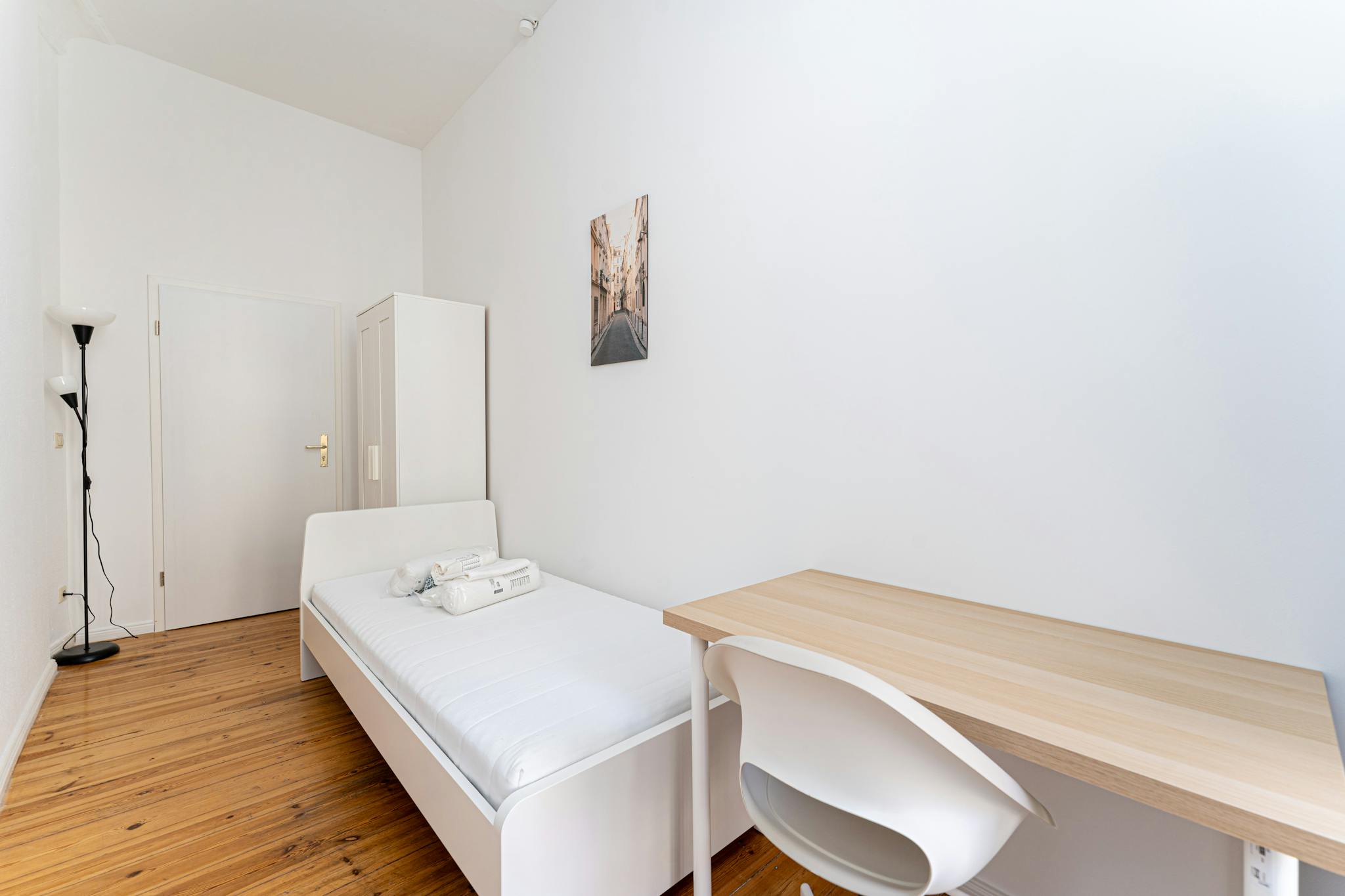 This awesome shared apartment offers a spacious 97 qm with high ceilings as well as wodden flooring and it is located on the 1st floor. More central than this location you cannot find! The public transportation is near by so that you can reach any part of Berlin! Spacious kitchen and practical bathroom for the ultimate feelgood experience. The extras of very strong internet, electricity, heating and water consumption are included in the monthly rent - no hidden or additional costs.