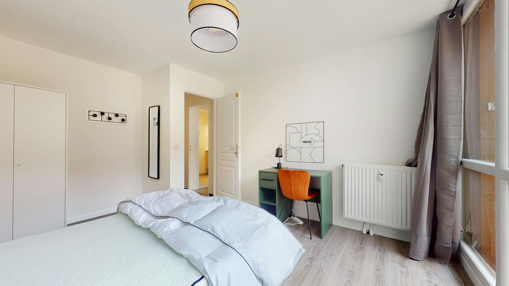 La chambre Room 2 est un petit coin de paradis personnel de 13 m2, juste pour vous. Avec un confortable lit double, une grande armoire pour toutes vos affaires, et un bureau pour travailler ou étudier en toute tranquillité, cette chambre a tout pour plaire. Elle a aussi un balcon privé où vous pourrez profiter de l'air frais. Et vous n'aurez pas à vous soucier des files d'attente le matin, car la salle de bains est partagée avec quelques autres locataires seulement.