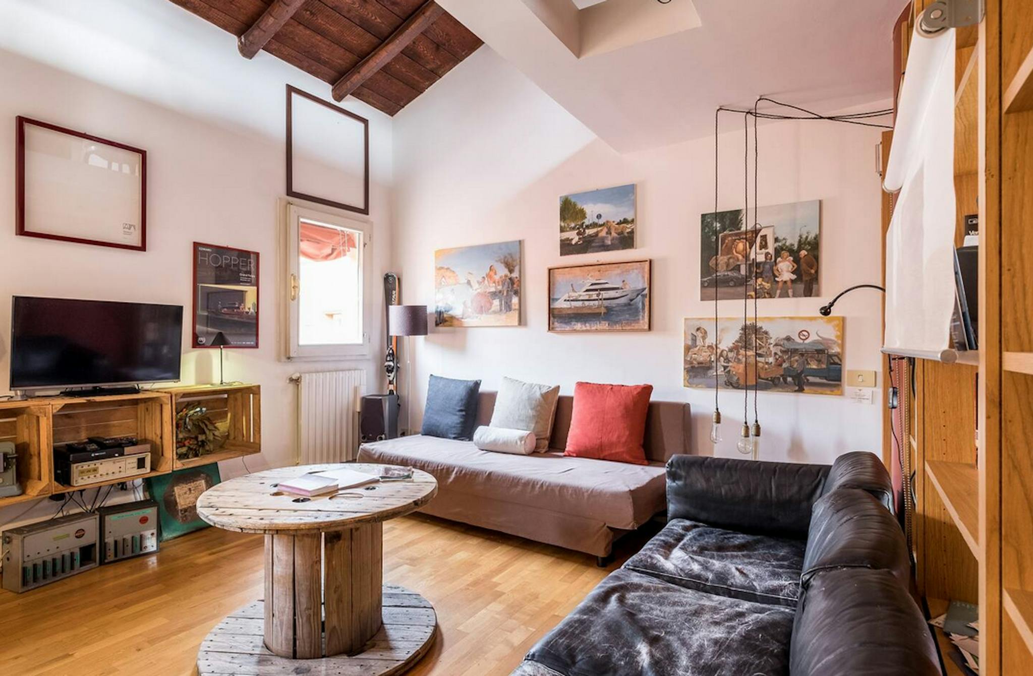 Elegante appartamento situato al 3° piano di una tradizionale palazzina nel centro storico di Bologna, arredato con molto gusto, molto luminoso e completamente accessoriato. Composto da ampia zona giorno con tavolo da pranzo, zona studio separata con divano in pelle e divano letto matrimoniale. Scala a chiocciola che conduce al soppalco con letto matrimoniale, cucina completamente accessoriata e bagno nuovo di ristrutturazione con doccia, water e bidet. internet wifi illimitato.