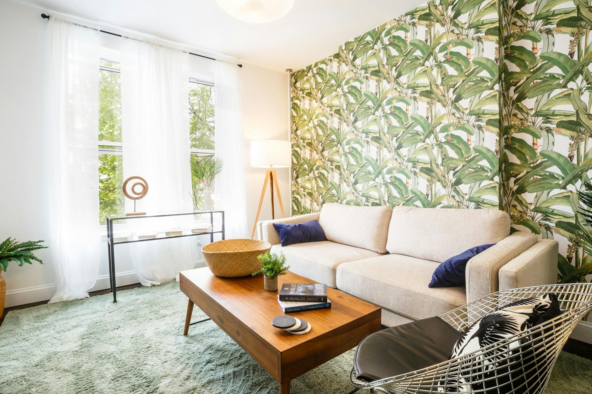 Find joy in a refreshing palette of soft greens, chrome metals, and lush wall-coverings, featuring a sunlit living room overlooking your scenic Prospect Heights neighborhood. The greenest and brightest oasis in Prospect Heights- take a step into the home and this gem will have your heart. Make it yours for a little while or a long while basking in this newly renovated 3 bedroom with a gorgeous shaker cabinet kitchen, satin wood floors and custom wallcovering that will make your heart sing. This home includes a private home office available for rent. This home's lush wallcovering coats an accent wall which is over a large beige sofa. Baskets and other tropical plants bring warmth within the room creating a sublime, cozy atmosphere. From walnut woods to metal accents, this home boasts a coordinated styling. This home includes a private home office available for rent. A three-minute walk from the front door of the building will get you to the train station at the corner of Park Place and Franklin Avenue for the S train on the Park Place Line. This apartment is a smoke-free unit that includes paid parking and WiFi.