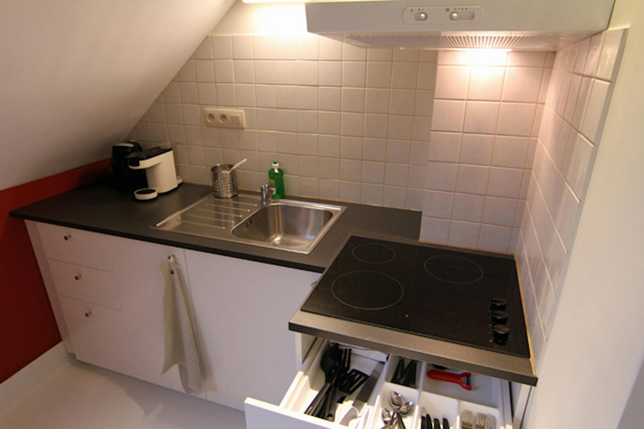 Kitchenette well equipped with fridge, senseo machine β, water boiler, cooking plates π³, microwave/grill and all cutlery - plates - glasses - pots - pans - etc. π½οΈπ³π₯£