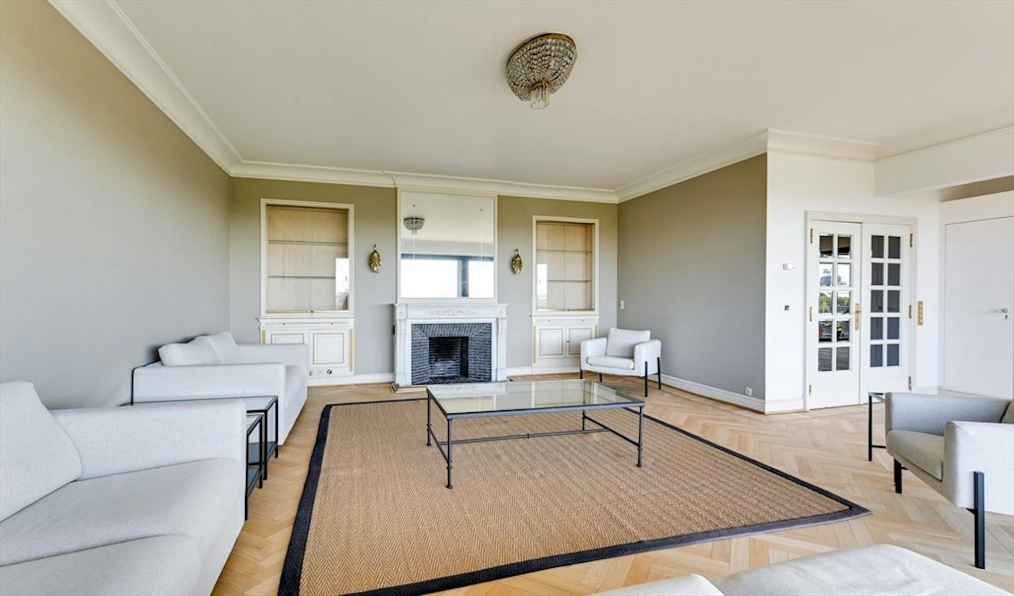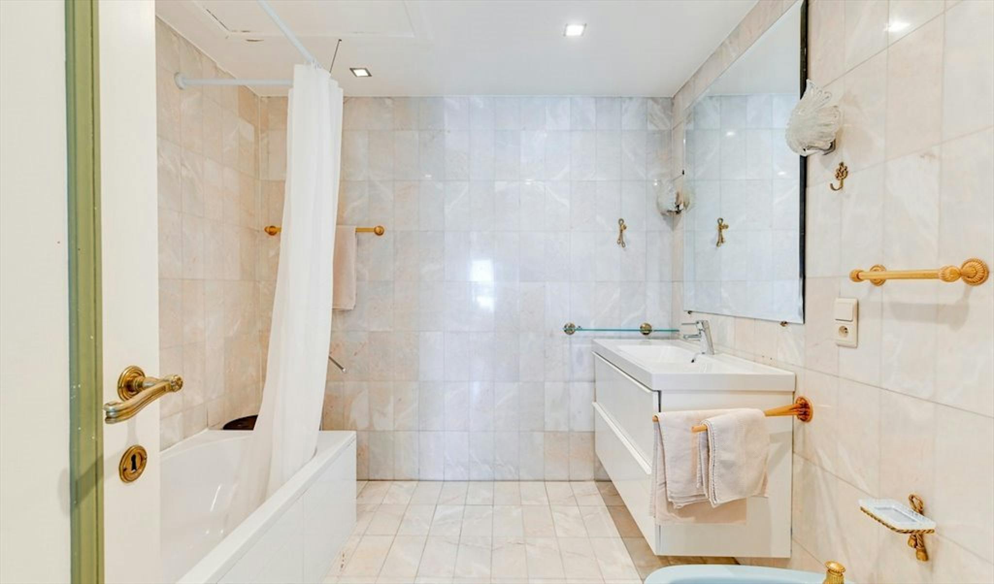 L'appartement entièrement meublé de 350m2 compte 5 chambres : 2 chambres ont une salle de bains et des toilettes privées et les 3 autres chambres ont 1 salle de bains et 2 toilettes à partager.