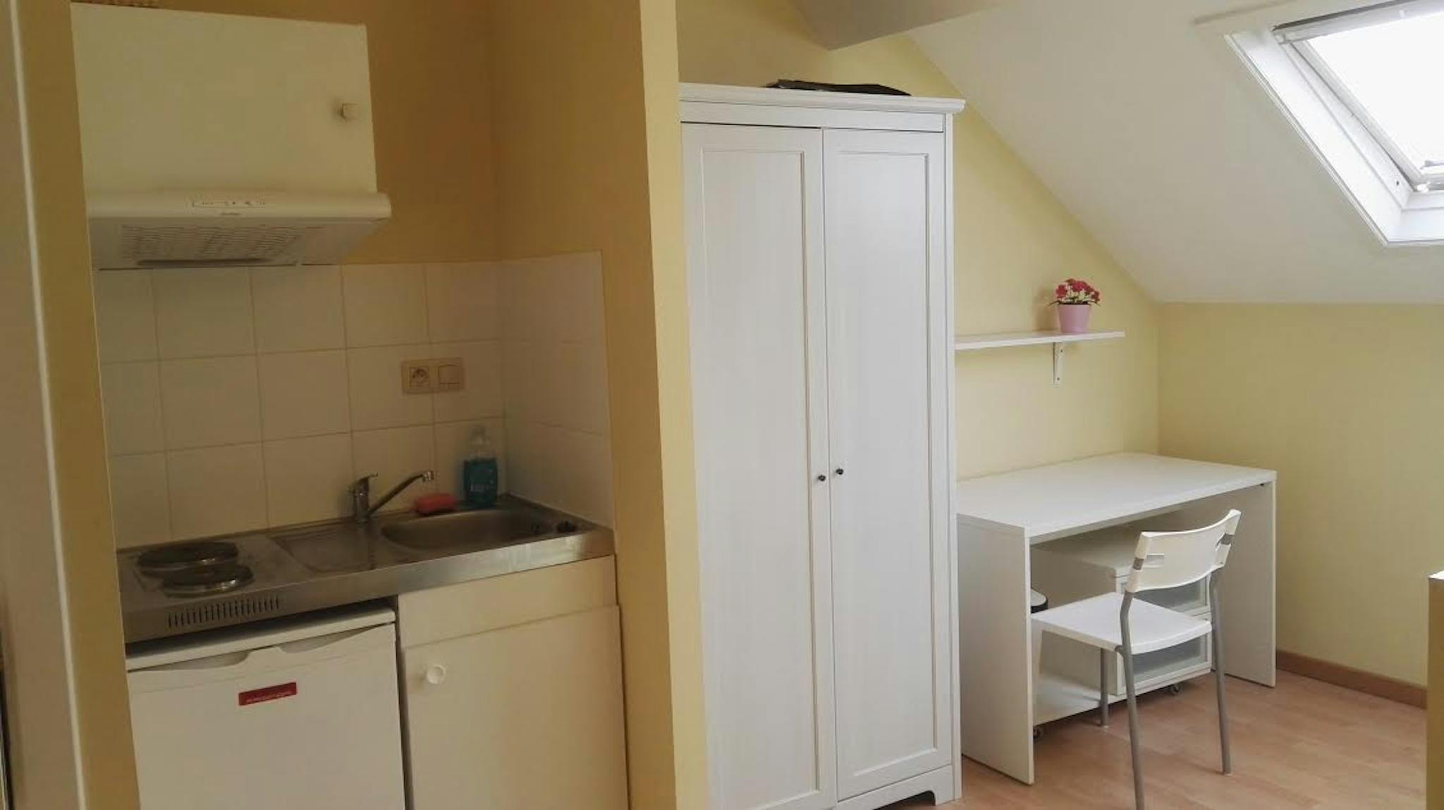 Studio, 16m2 with a private kitchenette, bathroom, wifi connection.