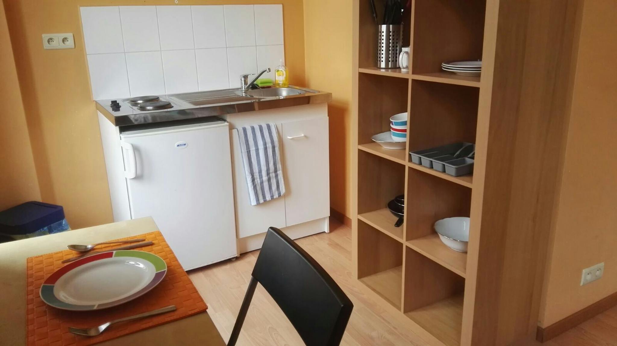 Modern studio in a small residence near Sq. Ambiorix. 5-7 minutes walk to Schuman metro station and the EU Commission. Comfortable double bed Private bathroom and furnished equipped kitchenette.