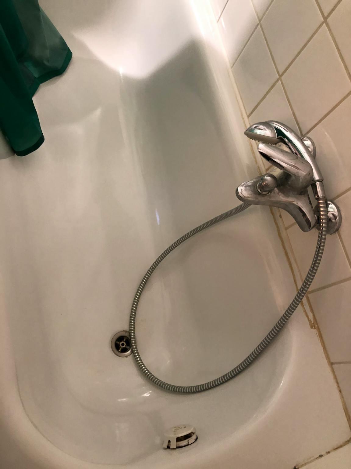 The bright apartment have fully equipped and shared kitchen and a nice bathroom with bathtub.