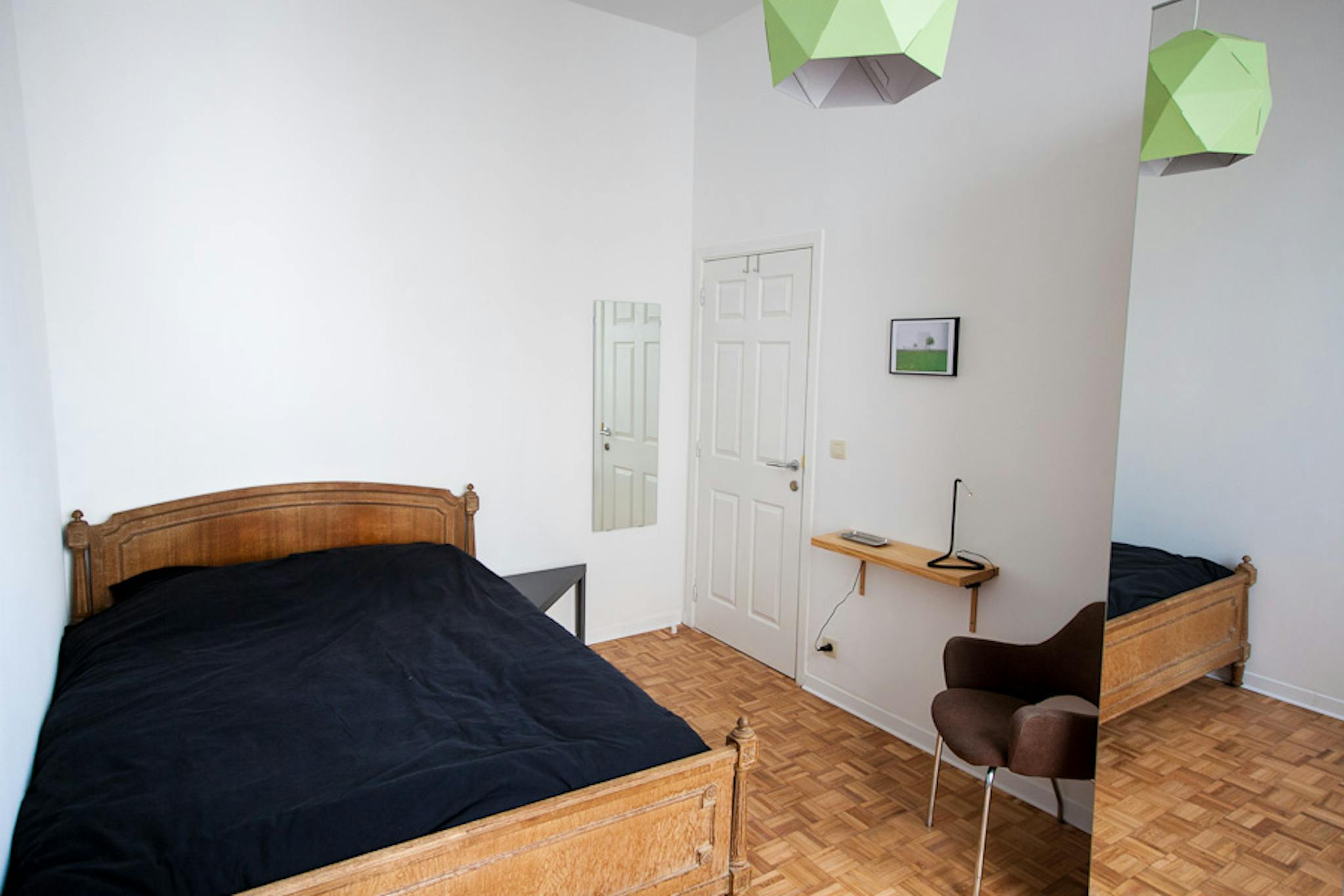 - 13 m2 private bedroom double bed, night table, desk, large wardrobe and sink.