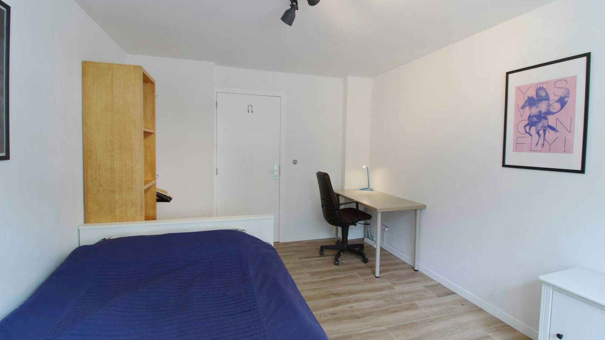 The kitchen, the living room and garden are common areas to all the tenants. Each bathroom is shared with 1 or 2 other tenant(s). Special care has been put to accommodate convivial common living while preserving each one's privacy. Perfect for a single person, suitable for additional guests. Quiet rooms ideal for interns or young professional expats.