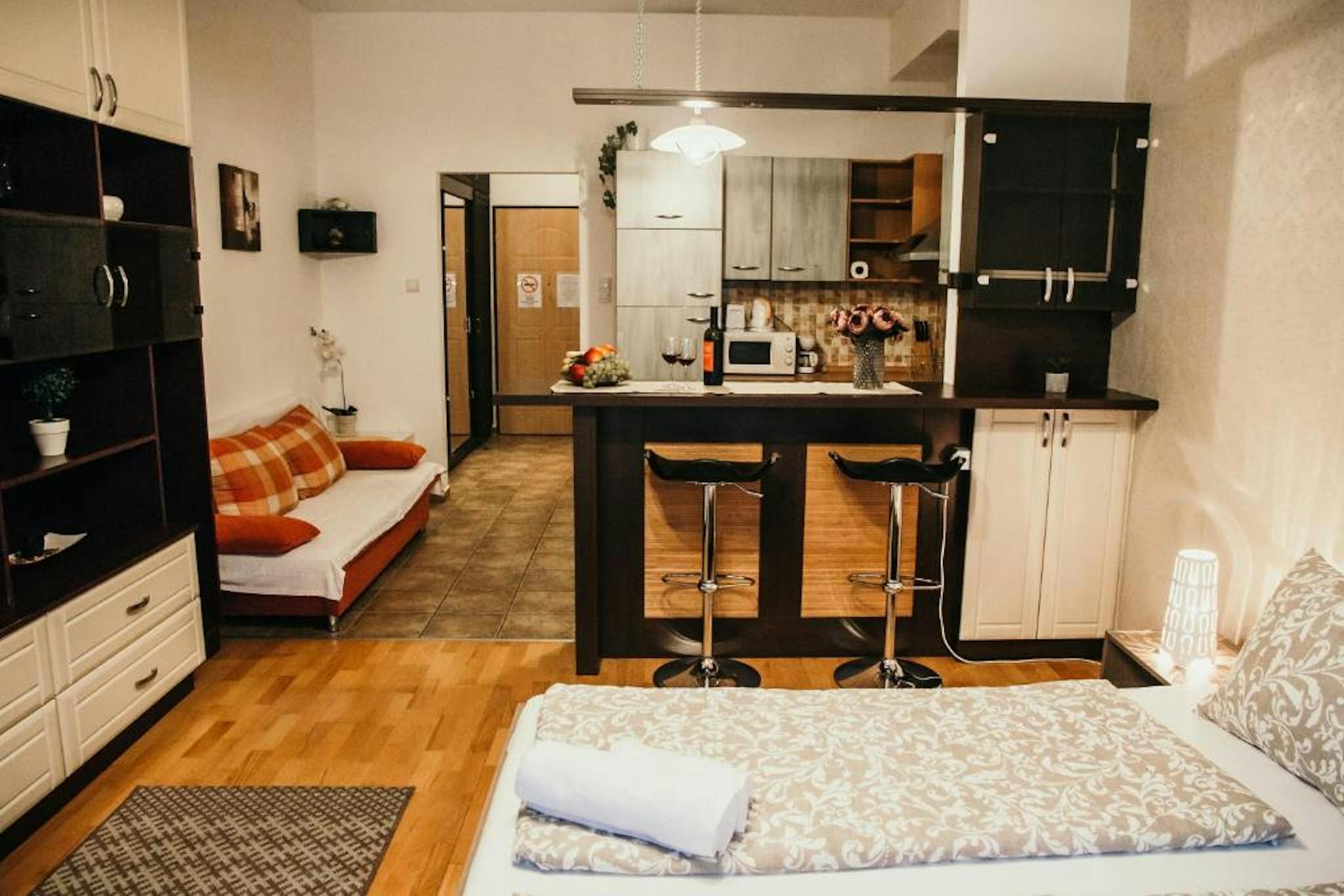 There are several bars and restaurants in a radius of 200 meters, while the Kazinczy Utca area with ruined bars and restaurants can be reached within 150 m. The famous Szimpla Kert ruin pub is within 210 m of Elite Rooms & Apartments. The lively Gozsdu Udvar passage area is at a distance of 170 m.