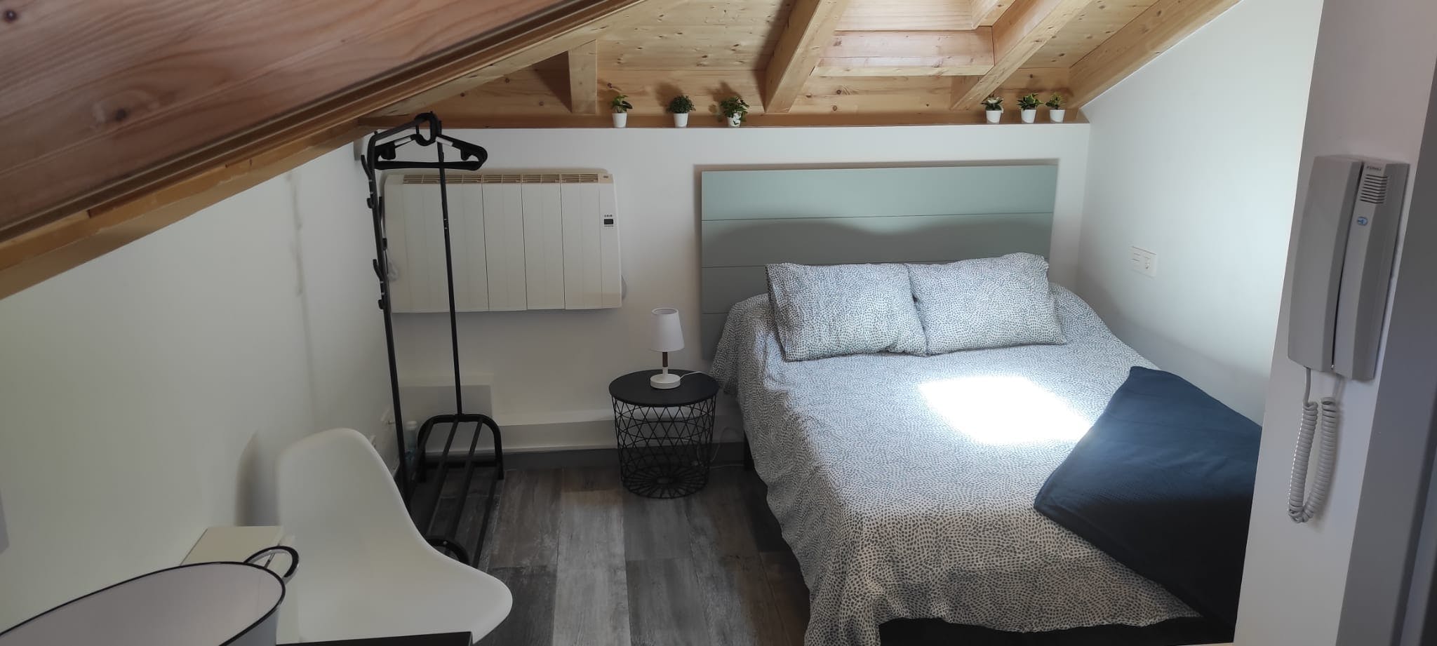 It is a 22m2 studio, completely renovated, in the attic of the building, with the charm of the visible wood of the roof. The space is well distributed, everything in one room except for the bathroom. It is small but comfortable and well equipped. Totally new furniture. Viscoelastic mattress and pillows, to guarantee a good rest.