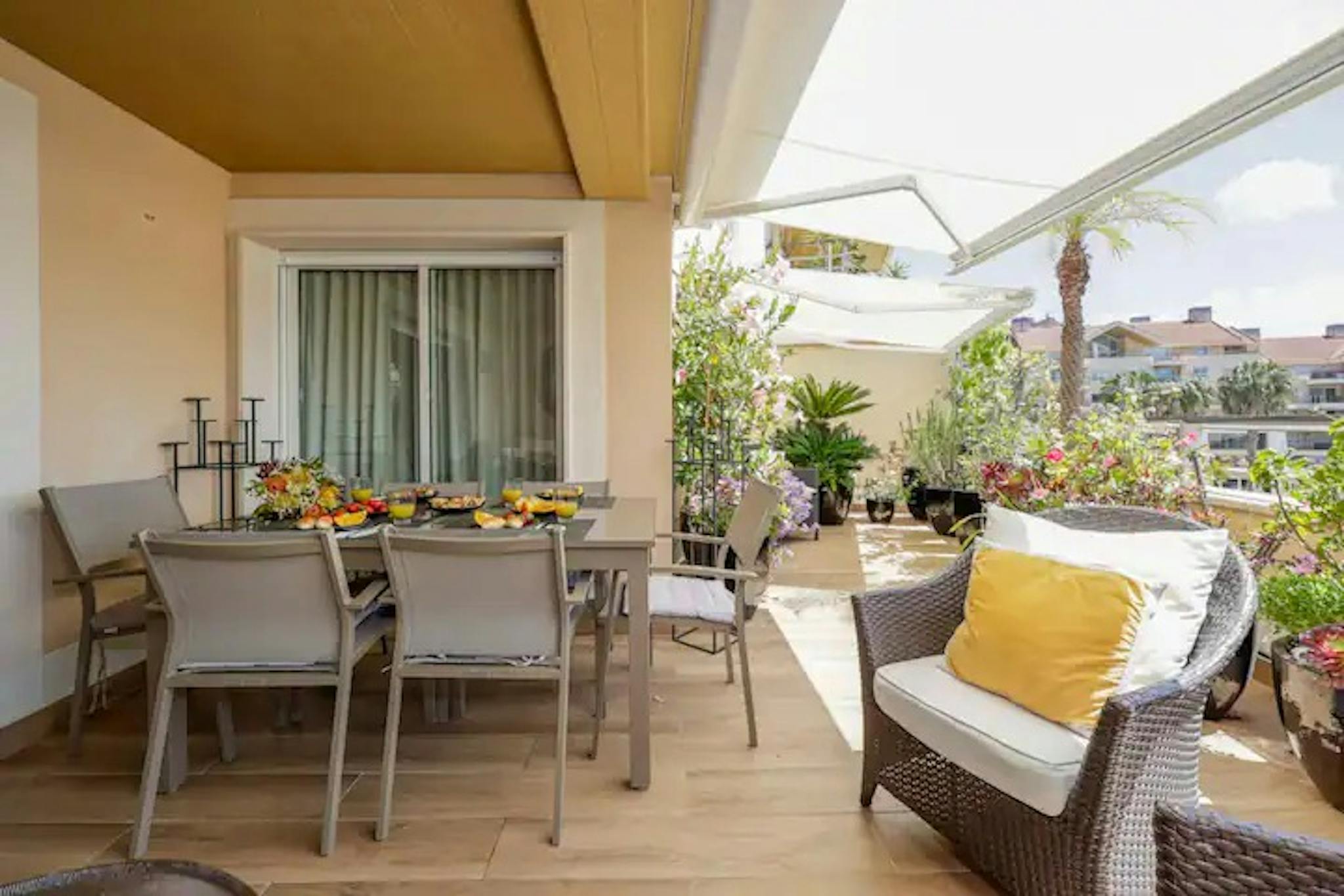 Beautifully decorated to a high standard with quality furnishings in a private condominium. This beautiful air-conditioned apartment comprises two bedrooms en suite, a large living room, a dining area, a spacious kitchen, and an extensive terrace with comfortable outdoor furniture.