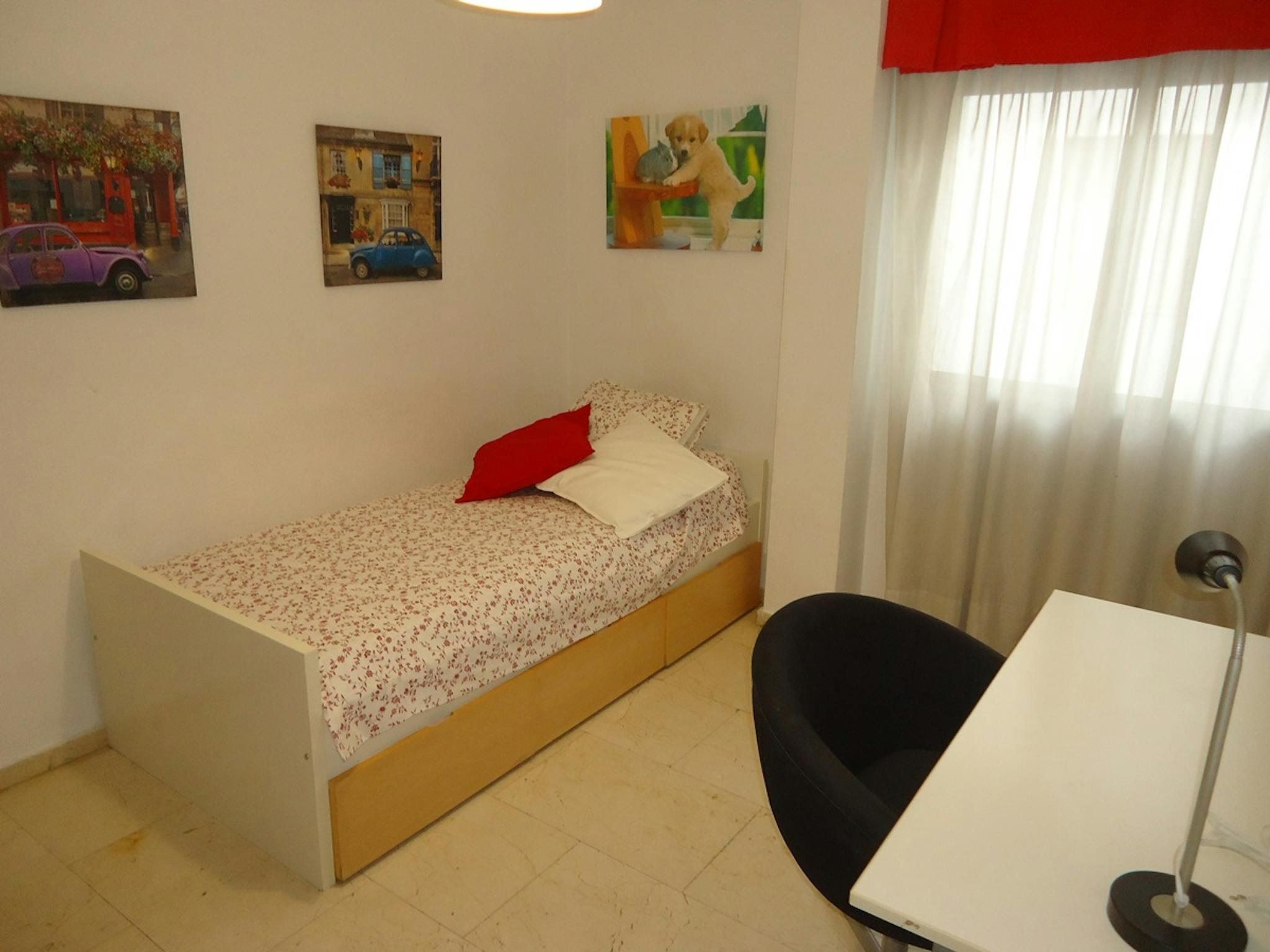 Individual interior room. Very spacious and quiet, perfect for studying. Completely furnished: it has a single size bed with drawers, a wardrobe, a shelf, a desk, a chair and a desk lamp. The community and water expenses are included in the price. The electricity, internet, and butane gas expenses are paid as an extra and divided among all the tenants.