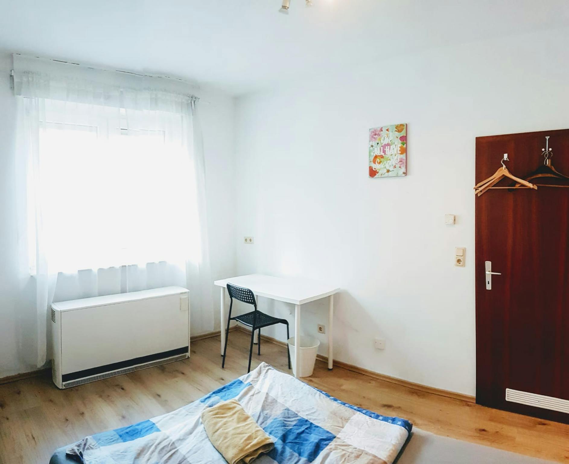 Each room is ca. 12-14 m2 in size and is furnished (a desk, a chair, open wardrobe and a pull-out sofa/bed, as well as some book shelves.