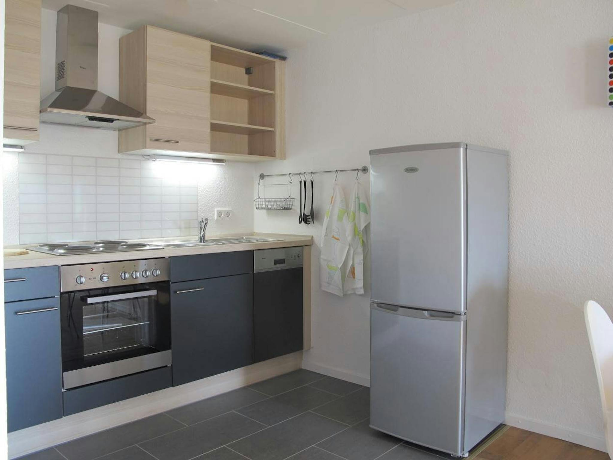 - a fully equipped fitted kitchenette with electric stove, oven, dishwasher, microwave