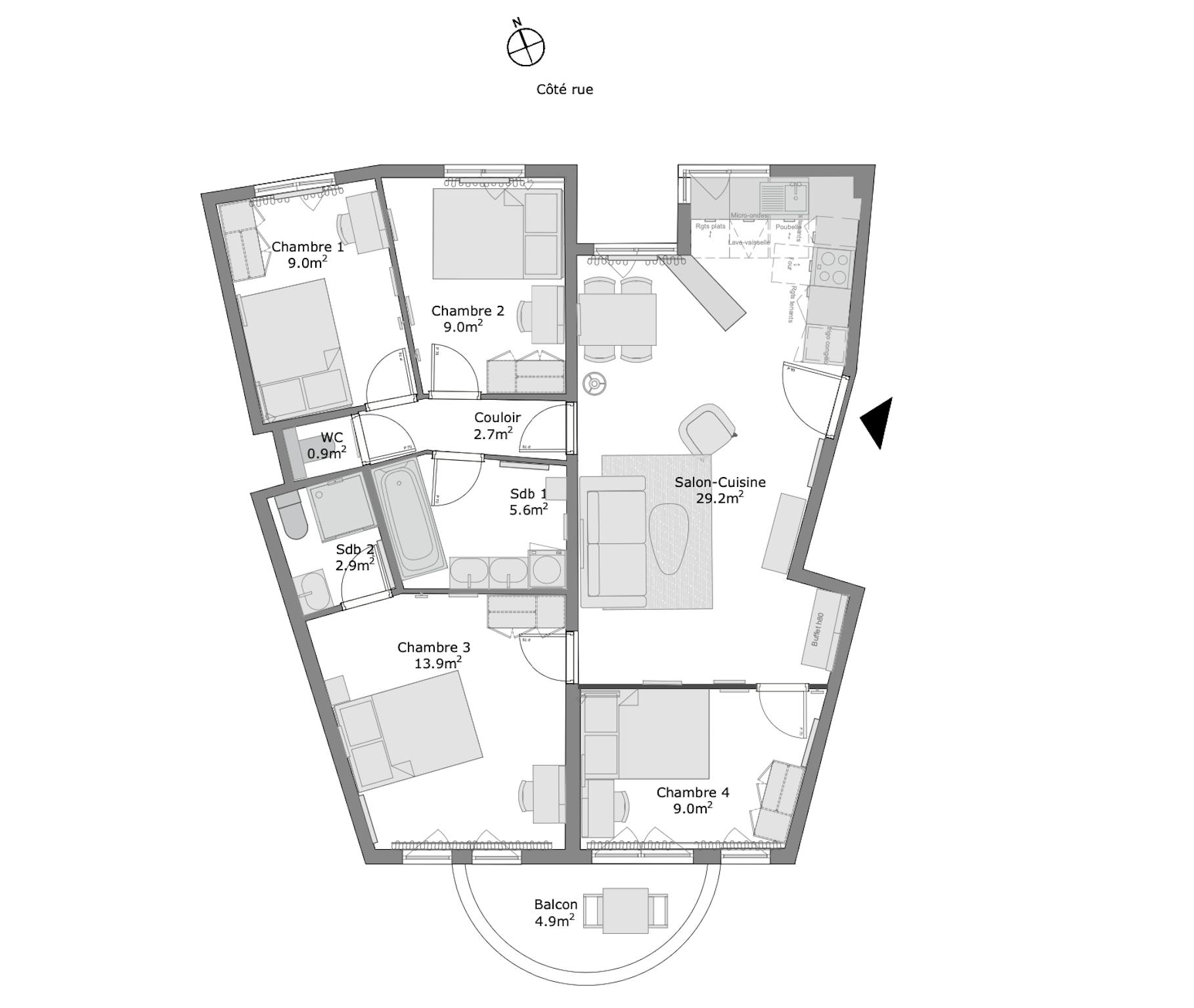 The neighborhood around Rue de Paris is lively and well-connected. The Paix tram station (Tram 55) is just a minute away, making it super easy to get around town. Whether you need to commute or just want to explore the city, you're perfectly situated here.