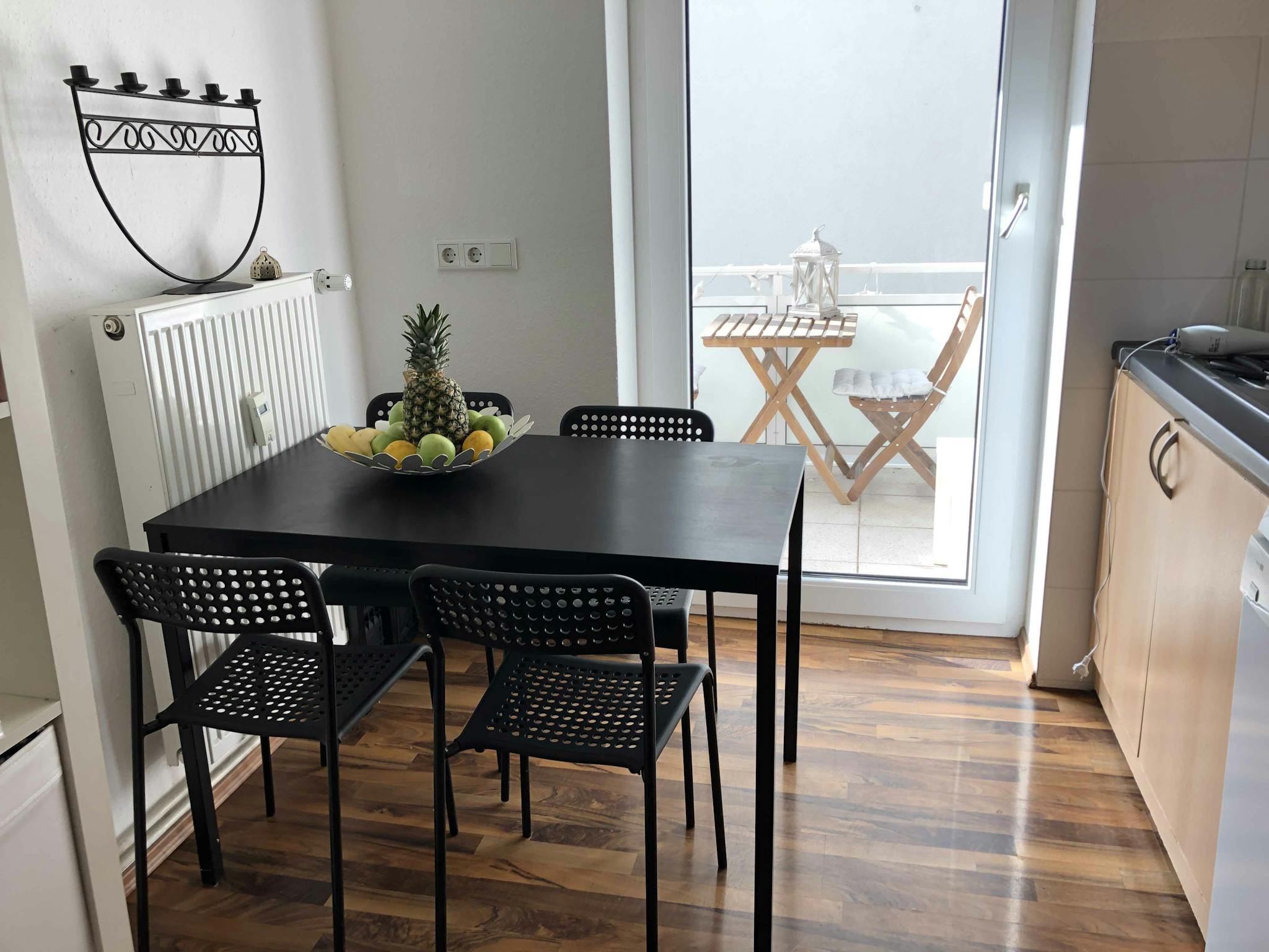 Located in the heart of Frankfurt and just a few steps away from a big park, this apartment offers easy access to public transport and many possibilities to go out. The interior is characterized by its space-optimized facility and a common balcony in the eat-in kitchen.