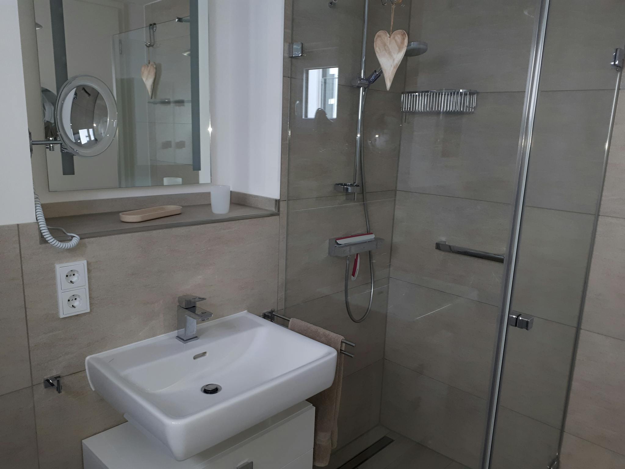 - Badezimmer mit ebenerdiger Dusche, Waschmaschine, Wäschetrockner