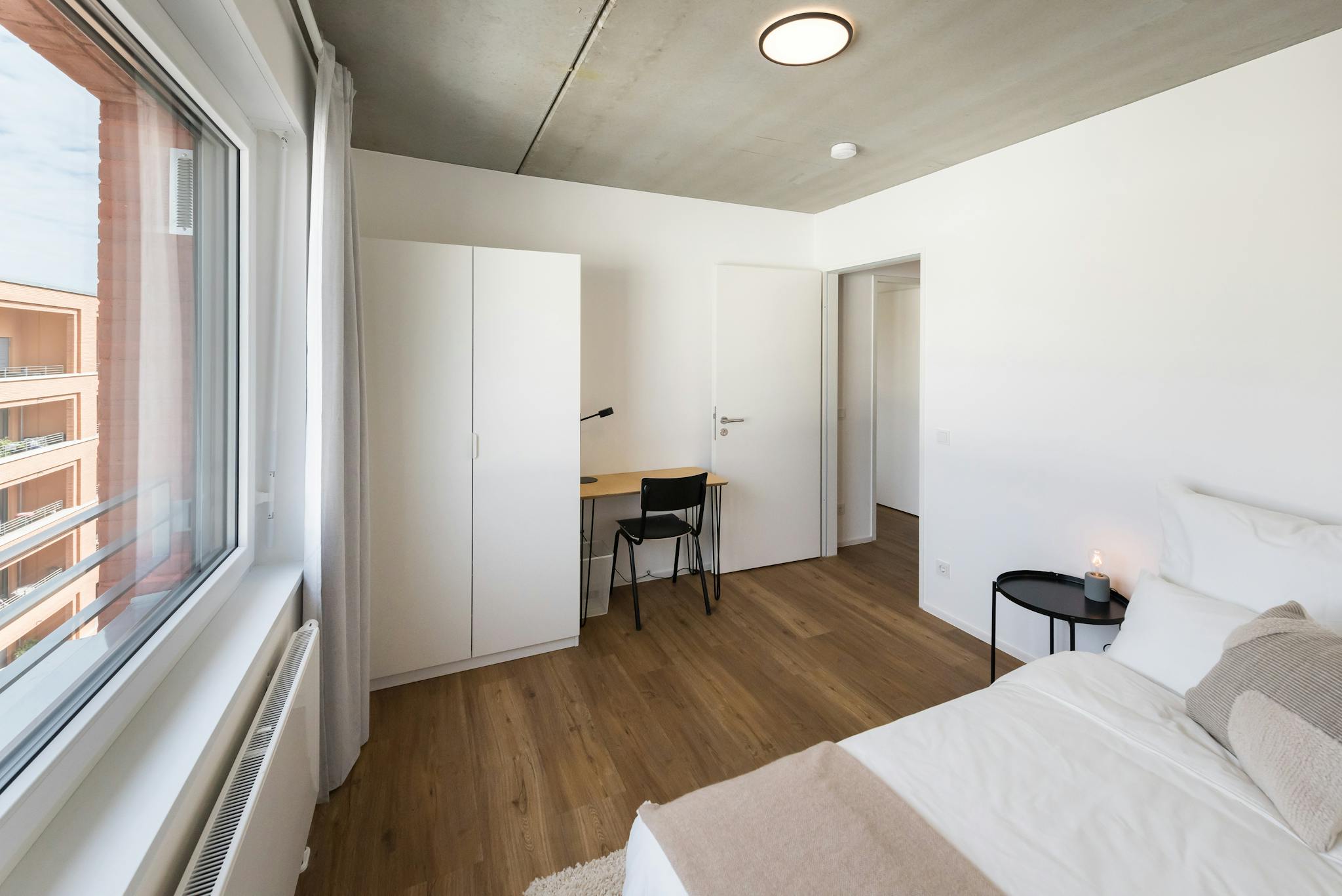 Our rooms come fully furnished with everything you need for a comfortable daily life, such as a bed with a premium mattress with bedsheets, pillows, and duvets, a large wardrobe, table, and chair for work with a lamp. Some rooms also have a private or shared balcony or terrace for you to enjoy the sunshine.