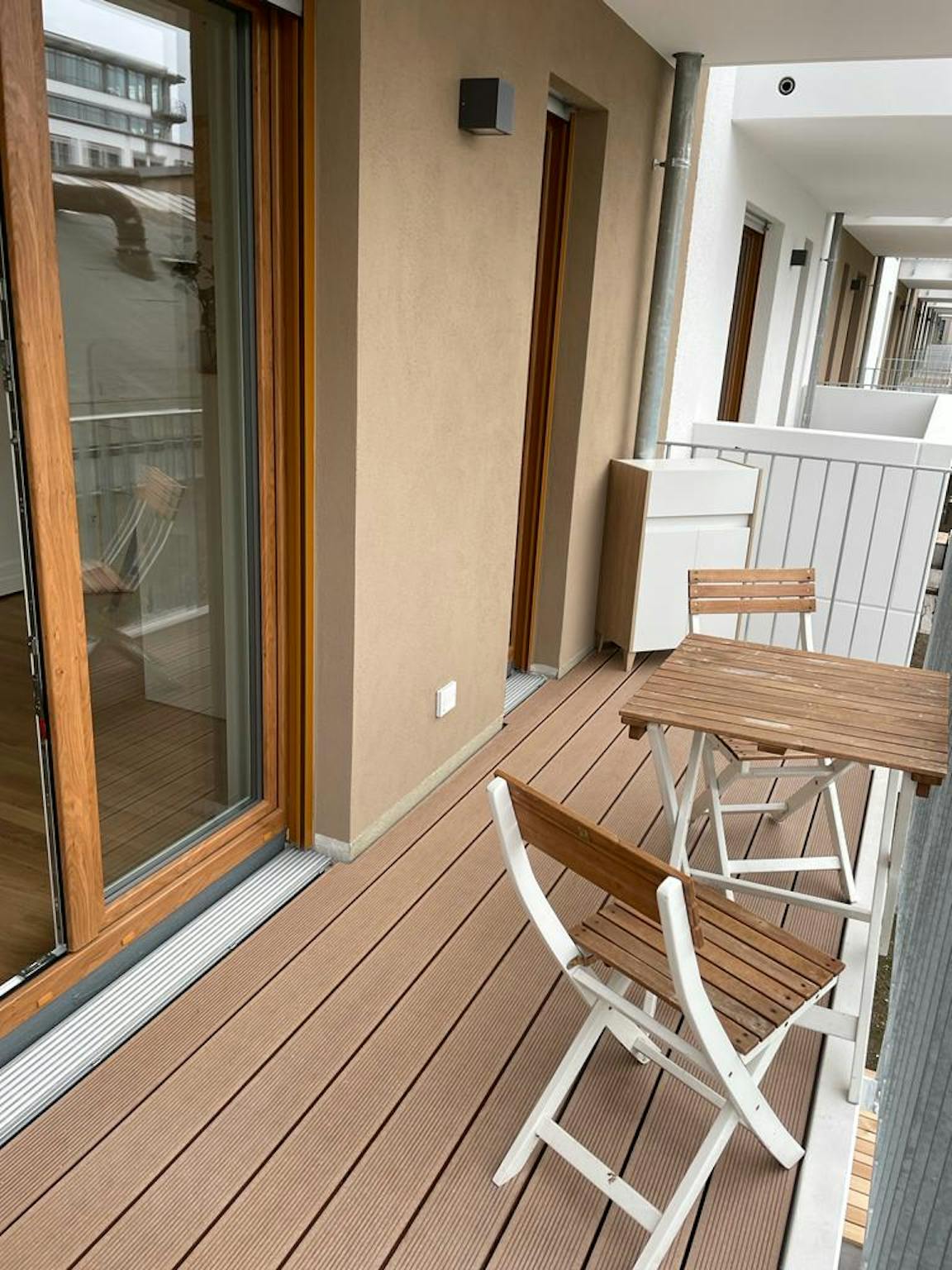 Through the building entrance, you enter the apartment on the 1st floor, which has a high-quality interior and a balcony in northwest direction. In the apartment there is a new, high-quality and fully equipped fitted kitchen with dining area.