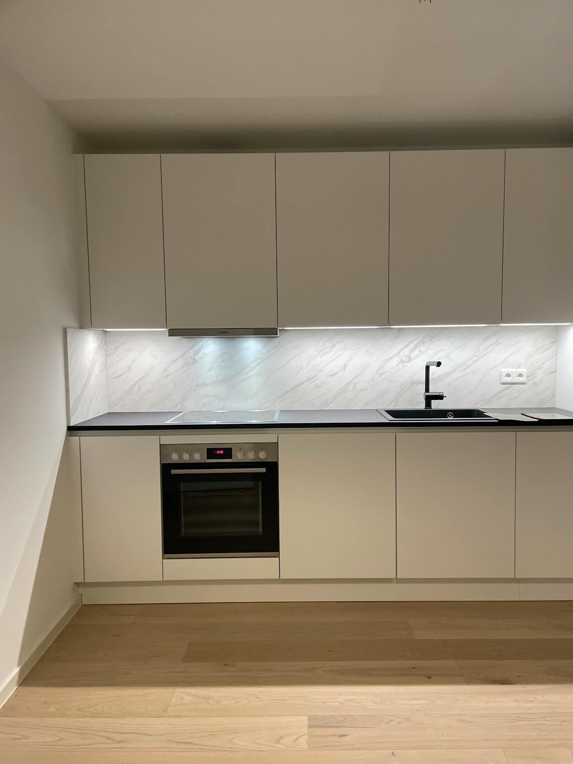 The flat is in a newly built building with brand new interior, furnishings and floor heating. It is good for couples and expats for short term rental. The living room is with big glass doors facing a 16 sqm terrace, connected with a shared garden. Furnished with sofa, tv, tv cabinet, coffee tables. The dinning area is bright and cozy with a fitted kitchen, fully equipped with stove/oven/dish washing machine/ fridge/ cooking tools and tableware. Bedroom is furnished with double bed / wardrobe/ study desk / side table. It is facing the south with sufficient daylight. The laundry room is in (hidden)ment and has an individual washing & drying machine. A terrace with green is a plus for outdoor enjoyments. The location is in between two parks, there are many shopping opportunities as well as access to public transportation are within walking distance.