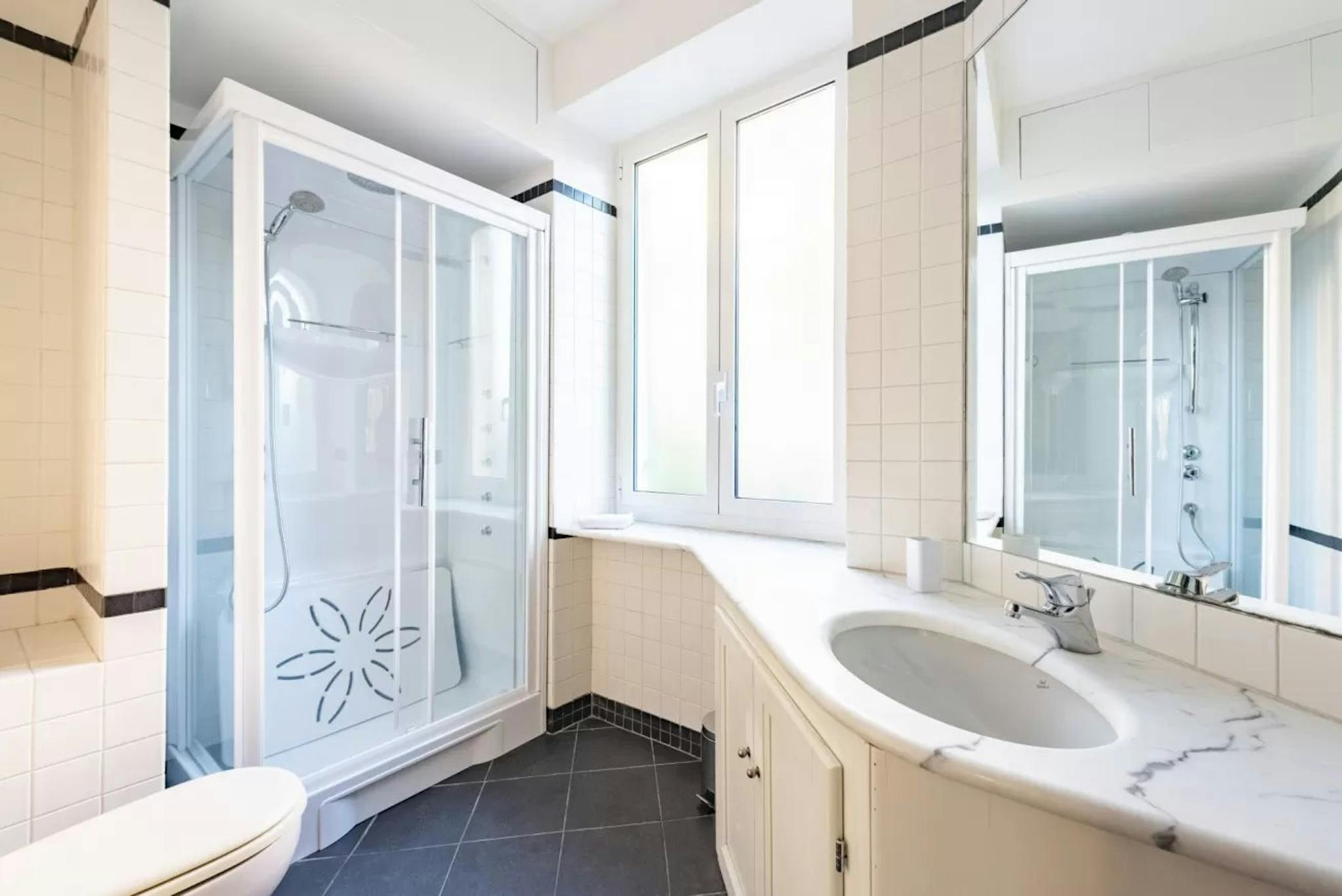 This amazing 2-bed flat is conveniently located near the sea, offering a fantastic getaway for up to 6 guests. The apartment spans 82 m2 (883 ft2) and includes 2 bedrooms, 1 bathroom, and a well-equipped kitchen with all necessary appliances. It's just a 3-minute walk to Circuit by the sea cinema and is situated right next to Vernazzola Beach. Genova Sturla train station is easily accessible, just a 10-minute walk away.
