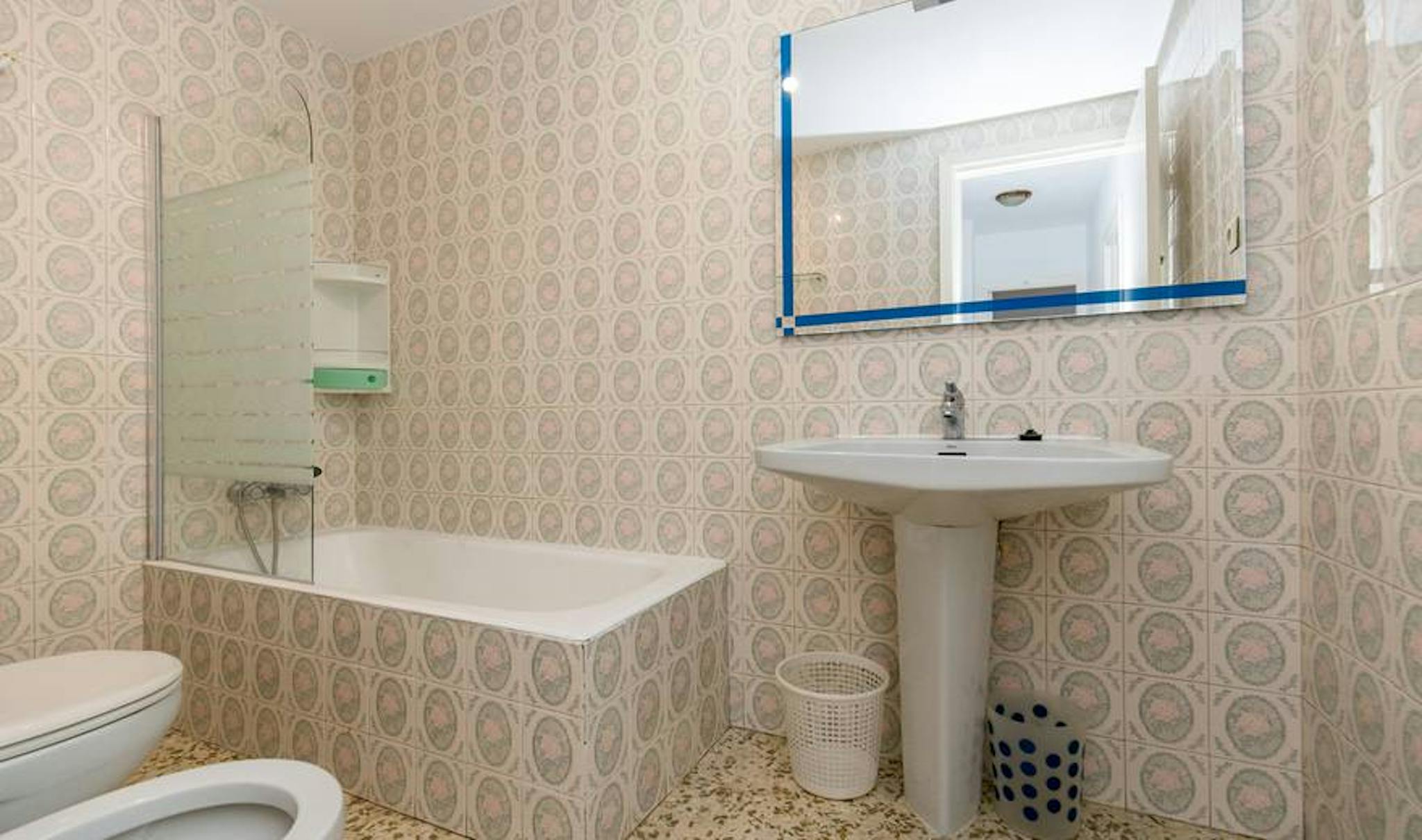 This flat is nothing like the rest you have seen until now! In this apartment on Pedro Antonio street, you will find the comfort of your own home! In the flat there is a comfortable living room with a TV, ideal for relaxing evenings watching movies. In the kitchen you will find a big fridge, a microwave, an oven, a stove as well as plates, pans and everything else needed for cooking. In the dining area you can enjoy your meals and relax with your flatmates. The flat was recently renovated, and we have bought completely new furniture, so it is ready for you to move in! One of the 2 bathrooms have a bathtub and a bidet while the other one has a shower and both of them have a WC and also large mirrors. We want to make everything easy for you, so the flat has a washing machine too!