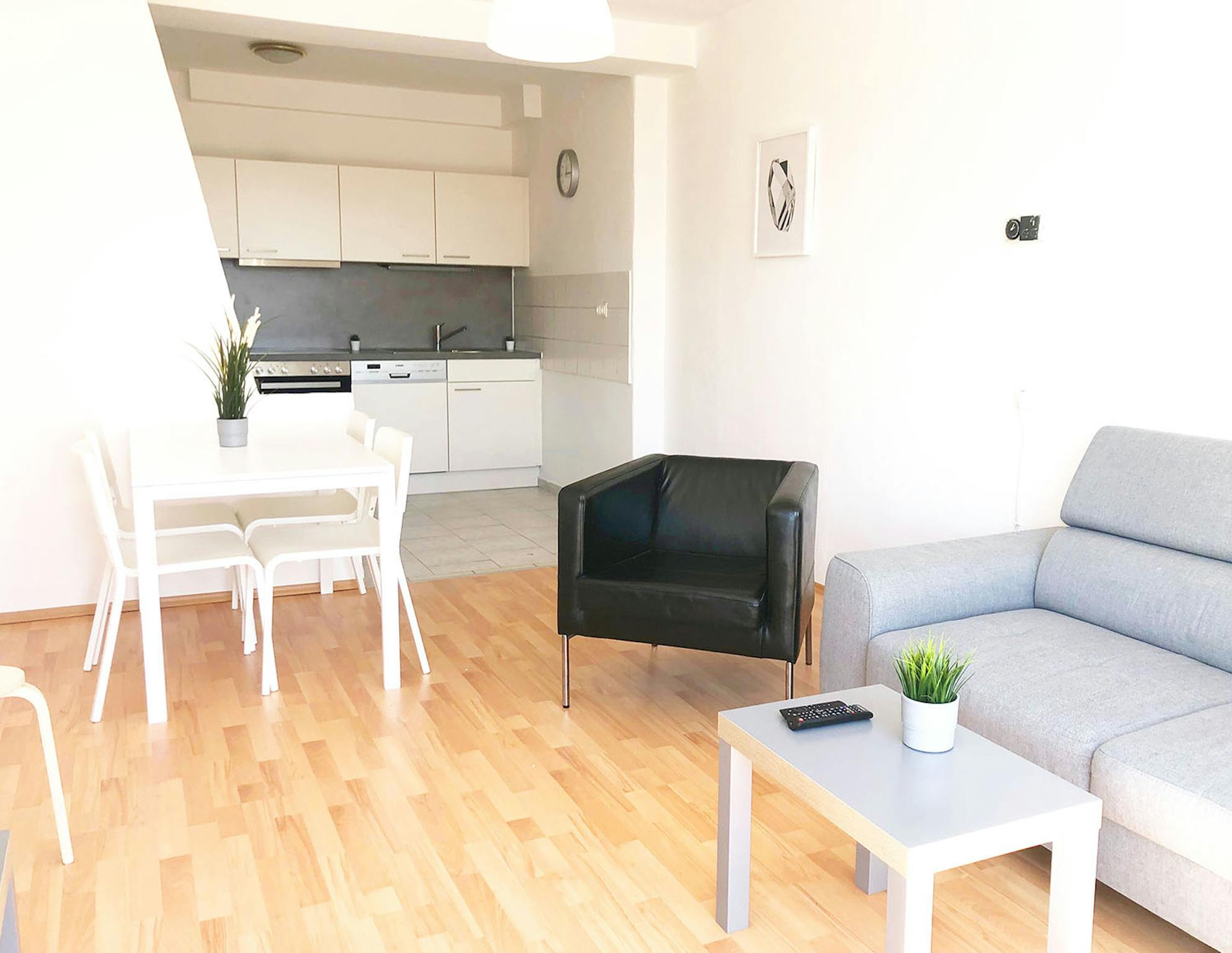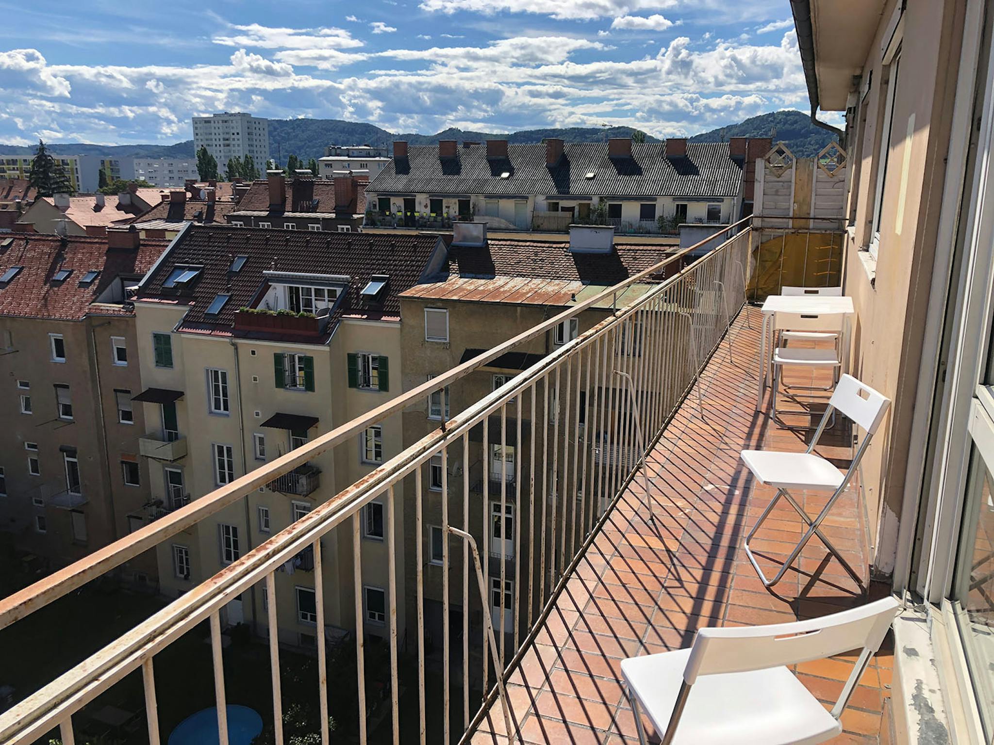 This newly renovated penthouse apartment in central Graz has 4 spacious rooms with 2 huge balconies overlooking the city and with direct view to the famous Schlossberg.