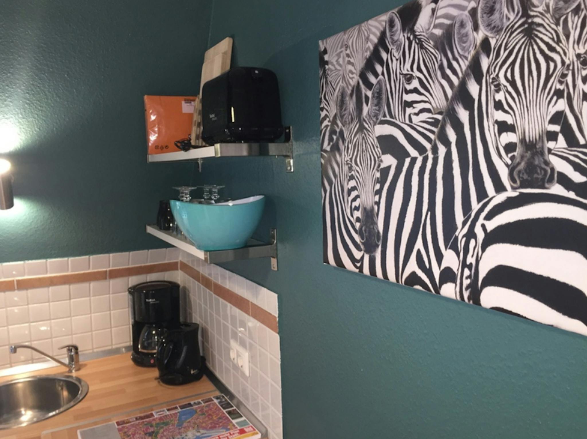 Living & Bed-room: 20m2, Dining Corner, Flatscreen TV, Closet, Makeup/working-desk, comfortable sleeping Couch, big bed (160x200), one Person bed (80x200), LED TV and Ste(hidden)oundsystem. Further, the sleeping Couch can be adjusted to a size of 110x190cm.