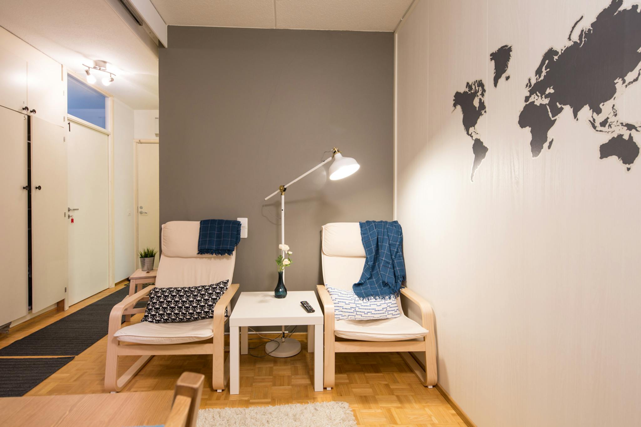 The apartment is located within walking distance from the train station at the end of a quiet, park-like side street. Shopping Mall Kaari, the 5th largest shopping complex in Helsinki with around 80 shops, is within a brief walking distance. The apartment is most suitable for students, professionals and employees residing in neighboring towns that are also interested in socializing with other nationalities.