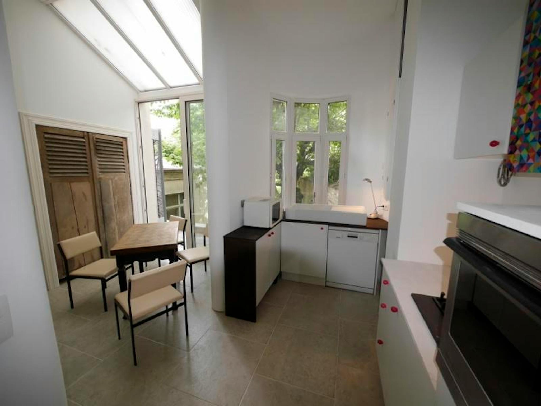 Très joli appartement entièrement rénové, lumineux, calme et joliment décoré (plafonds magnifiques) Grande chambre avec lit double, bureau & gardes robe. LOYER: 660 €. Salle de bain privative avec douche & lavabo. Deux WC disponible. Cuisine full équipée: hotte, four traditionnel, micro-ondes, grand frigo, congélateur 3 bacs, lave-vaisselle Belle grande terrasse aménagée avec vue sur adorable jardin.