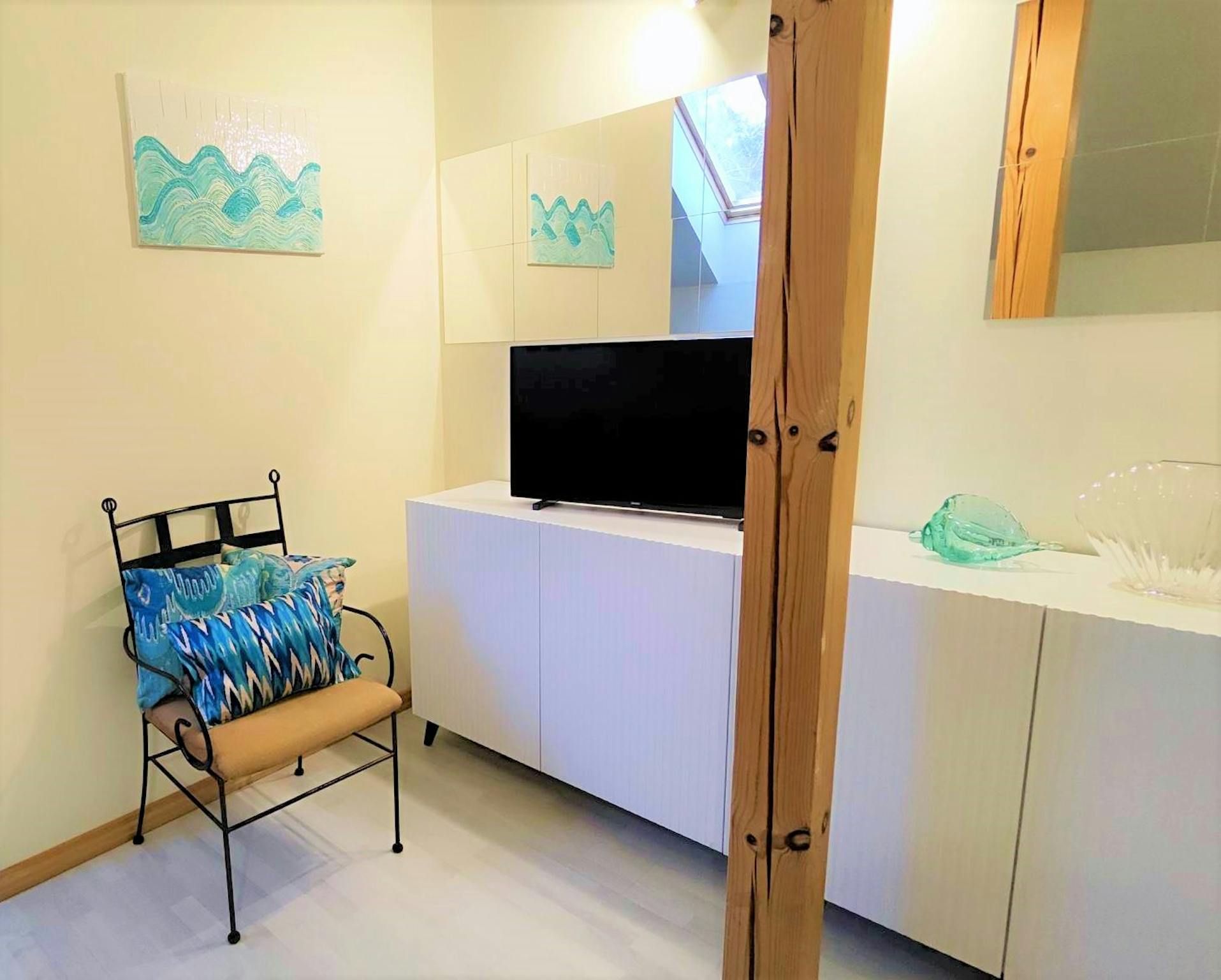 The Suite has a spacious living room with fully equipped kitchen, one bedroom with a double bed and a window with a view to the sky, TV, WiFi, bathroom with bathtub & bidet and a washing machine.