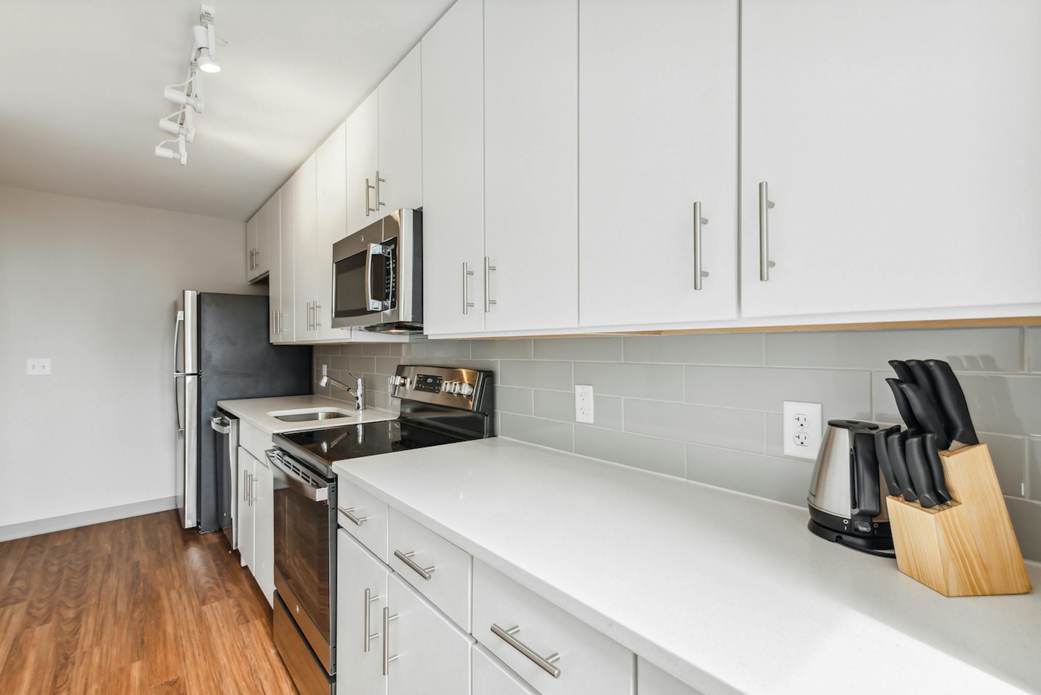 Room: This master bedroom is among our most spacious and luxurious bedrooms. It has a half bathroom inside the room along with a full-size bed, study desk, nightstand, fridge, 60" Smart TV, and a streaming device. Perfect fit for students looking for ultimate privacy and comfort. Big windows allow an abundance of natural light to enter the room. No need to even mentioned the best view of the city. Building and Neighborhood: Situated in the heart of Library District, Kansas City, the Library Lofts offer residents a unique blend of luxury and convenience. Our apartments feature modern kitchens with quartz countertops and tile backsplashes, In-unit washer/dryer and units with city views, sunrise or sunset views, lofted ceilings, and architecturally historic details. Step outside our building and you'll find yourself in the midst of a bustling neighborhood filled with trendy restaurants, cafes, and shops. Our location is just a half-block from the Kansas City Public Library and within walking distance of the vibrant Crossroads Arts District, the bustling Power & Light District, and the popular River Market area. For those who love the outdoors, our apartments are just a short distance from the lush green spaces of Penn Valley Park, which offer walking trails, picnic areas, and stunning views of the city skyline. Additionally, our location provides easy access to major highways like I-35 and I-70, making it a convenient home base for commuters. Experience the perfect blend of luxury, convenience, and urban living at Library Lofts in the heart of Kansas City's Library District. All pictures shown are for illustration purposes only. The actual room may vary slightly due to the layout. An in-person or virtual tour is recommended.