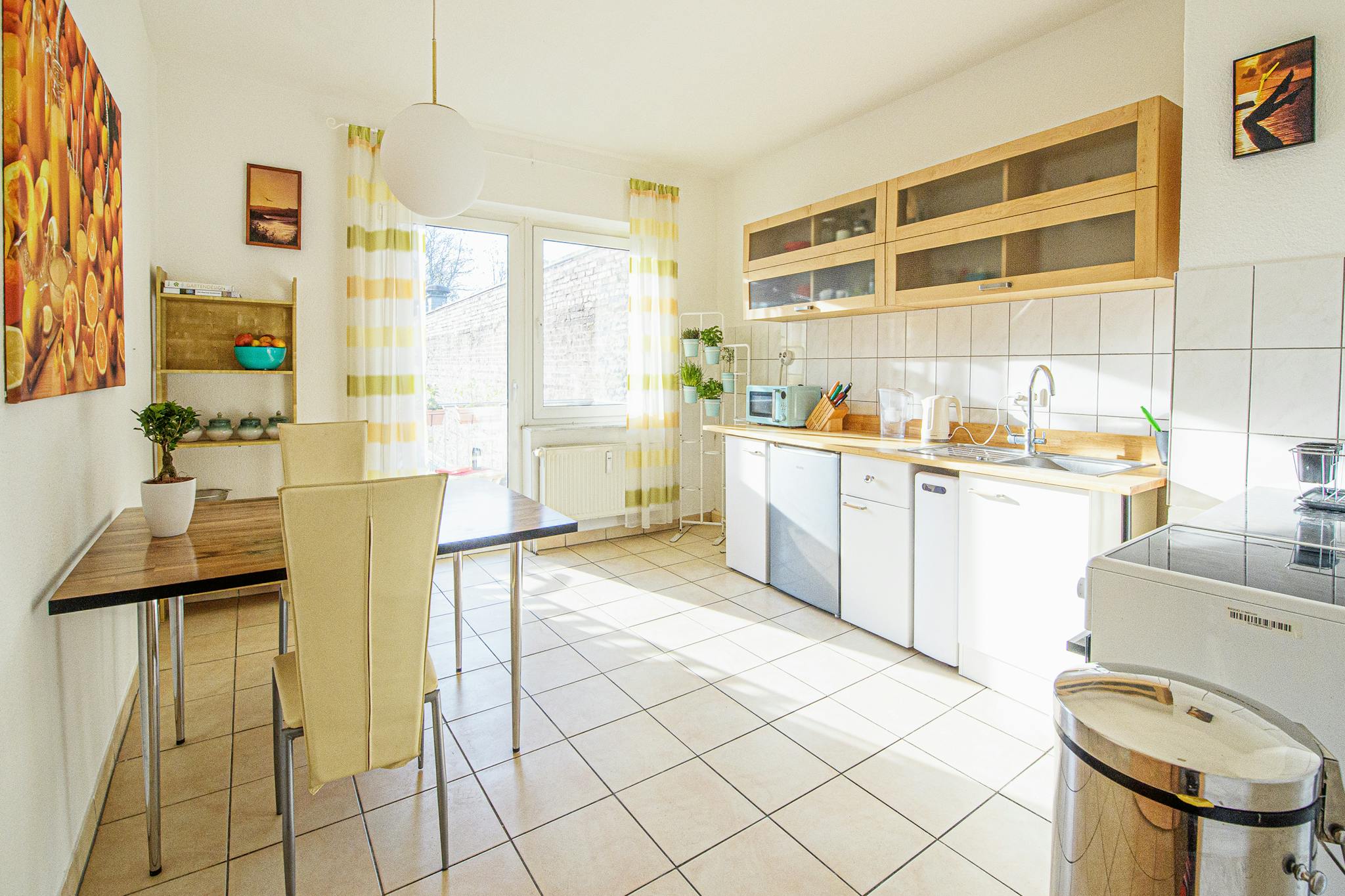 Eine voll ausgestattete große Küche mit Esstisch, Backofen und Kühlschrank ist sehr gemütlich. Zahlreiche Cafés, Restaurants, Geschäfte, Mediapark und Stadtgarten haben Sie in direkter Nähe.