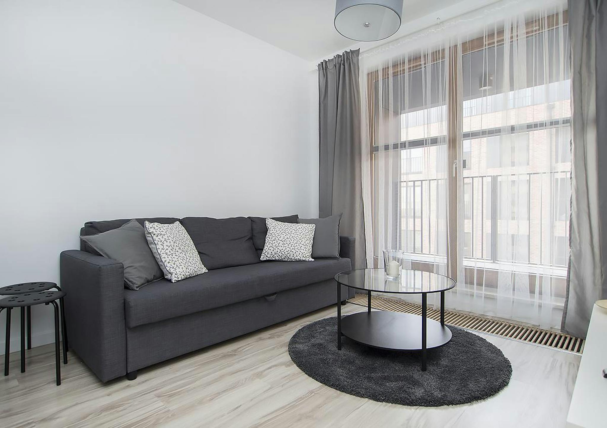 This bright apartment is surrounded by greenery and away from the hustle and bustle of the city, it is ideal for one person or a couple. It has a separate bedroom with a spacious wardrobe and the possibility of providing additional, functional accommodation in the living room. A fully equipped kitchen with a dining area, a comfortable living room, and an elegant bathroom will make you come back to your apartment with pleasure after a busy day in Krakow.