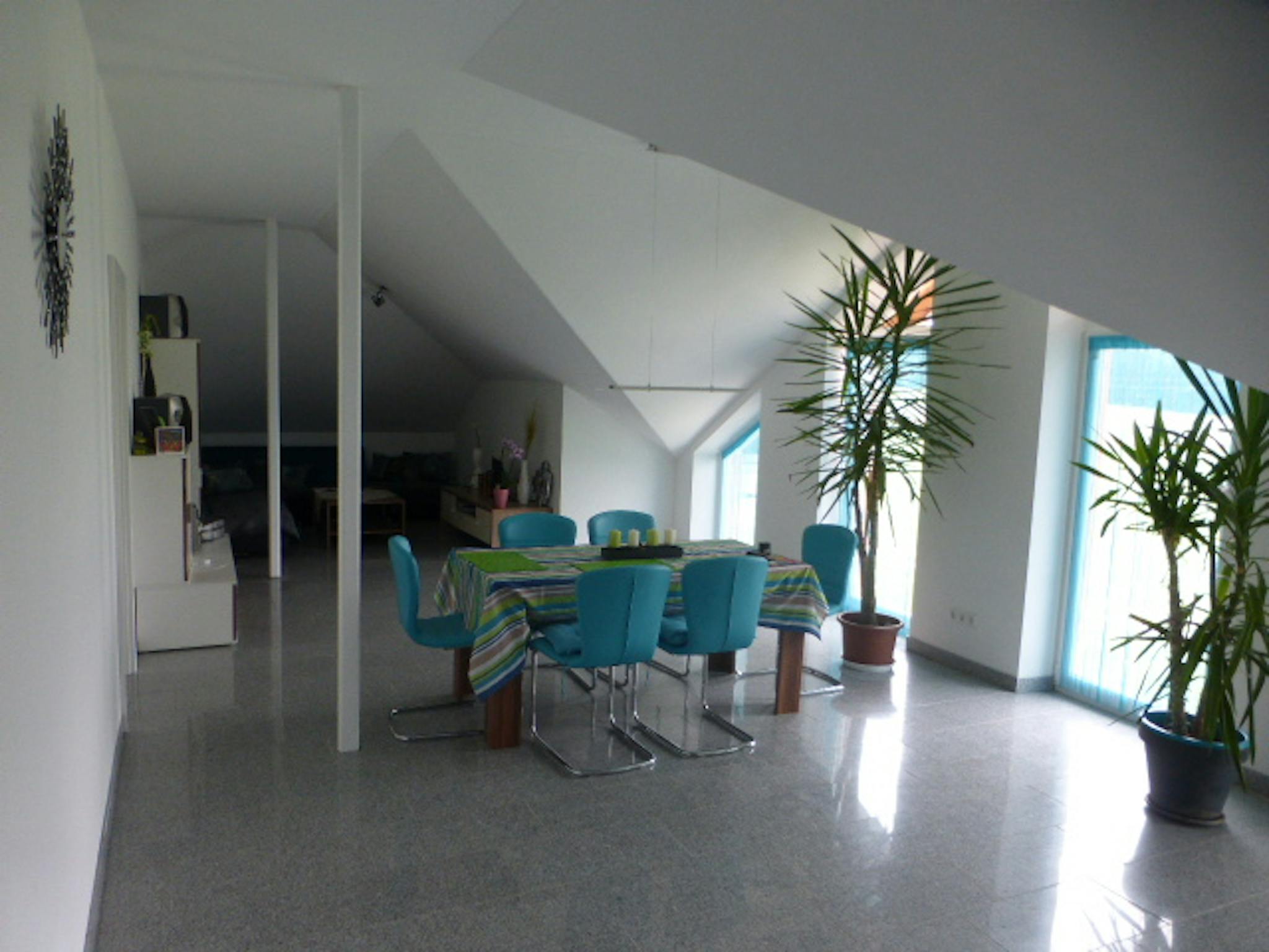 Im ersten Stock unseres Neubaus vermieten wir (Carolin und Thomas) einzelne Zimmer für jeweils 2-3 Personen. Die Zimmer/Wohnungen sind voll ausgestattet (Geschirrspühler, Waschmaschine, etc...).