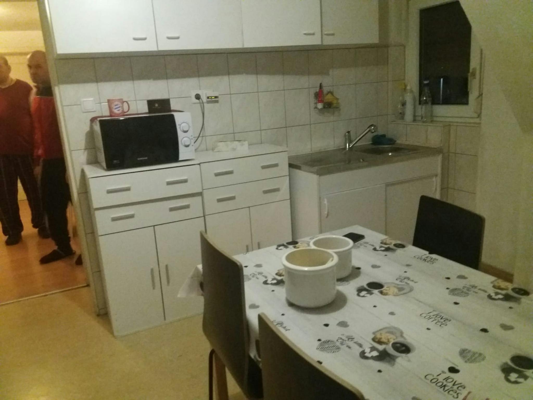 Im Zimmer ist keine Tischmöglichkeit, da sehr eng.