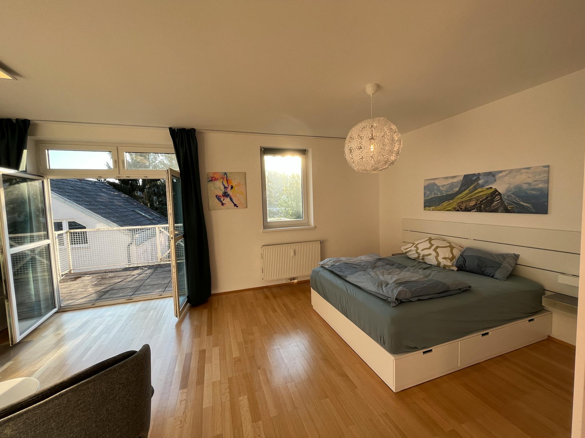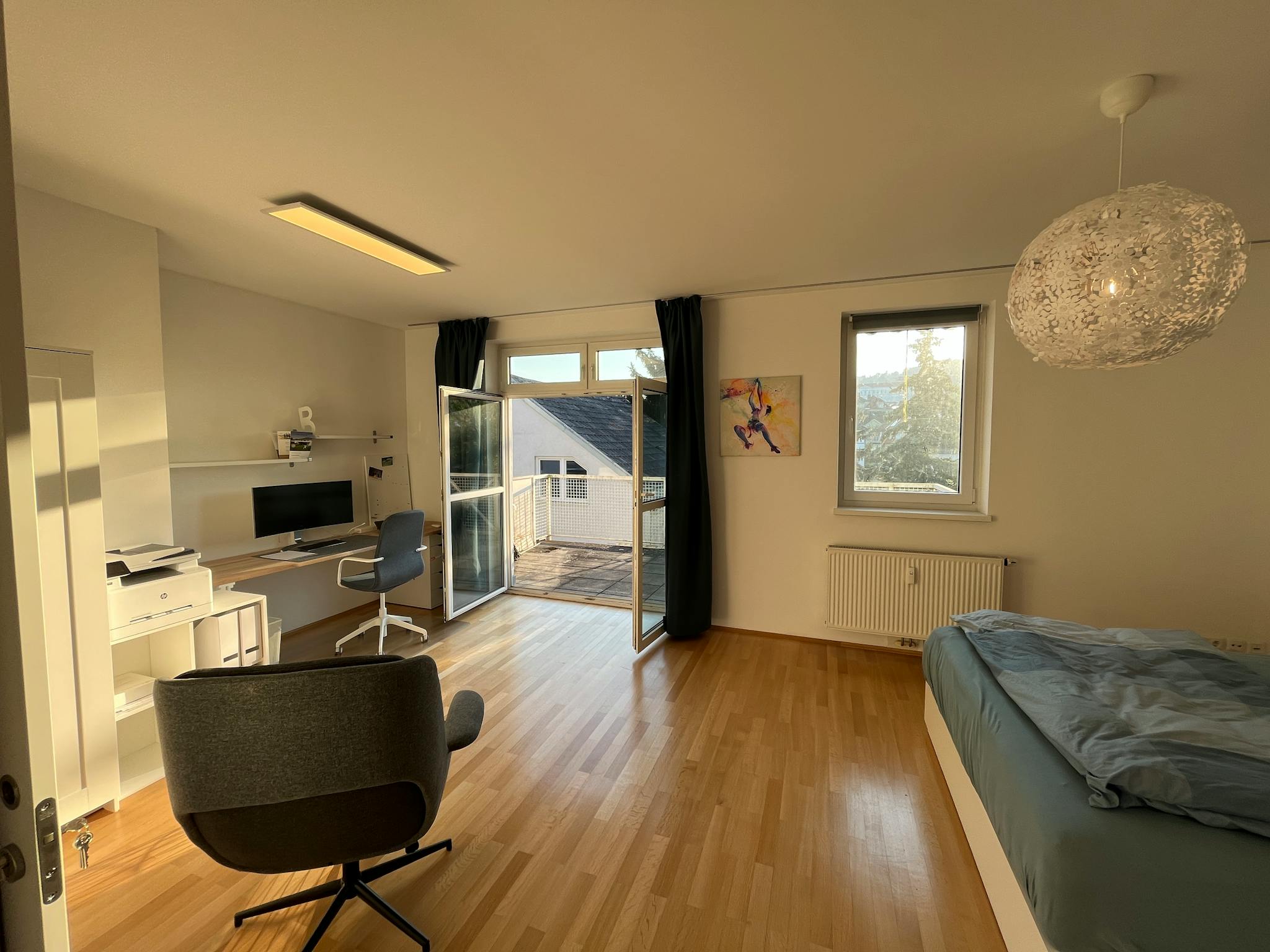 Das ca. 24m2 große Einzelzimmer bietet einen wunderschönen Blick auf den Pöstlingberg und Zugang zu einer 16m2 größen Dachterrasse. Es ist sowohl voll möbliert für den sofortigen Einzug. Das abschließbare Privatzimmer ist mit einem Schreibtisch inkl. Rollsessel und 160/200 großen Bett mit einer bequemen Taschenfederkern-Matratze und Stauraum ausgestattet. Somit bietet das Zimmer den perfekten Raum für Schlaf und Studium bzw. Home-office.
