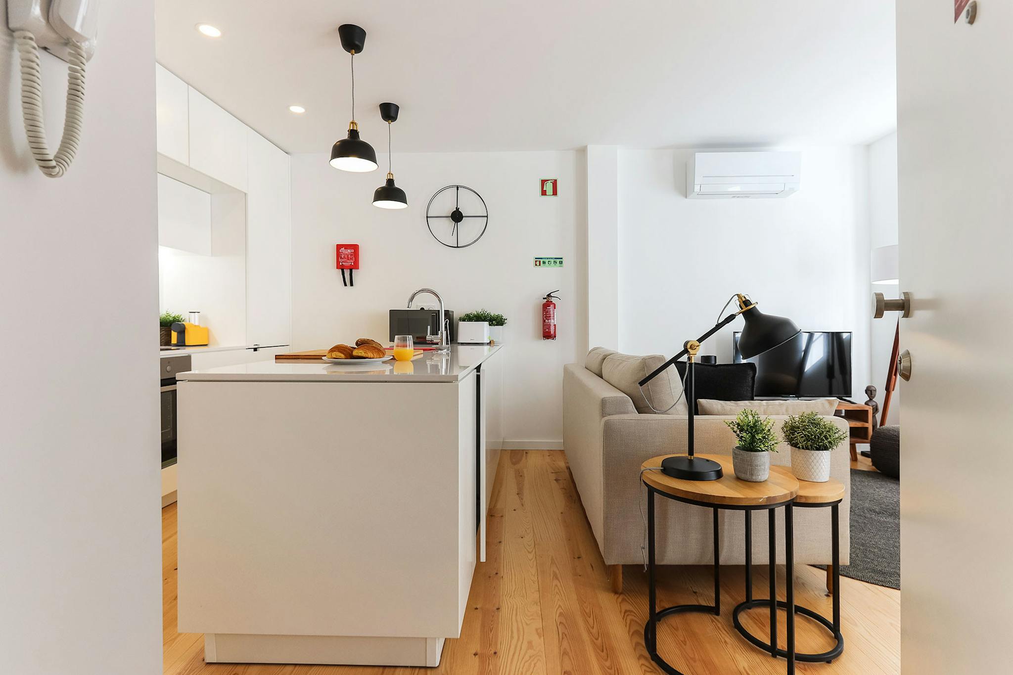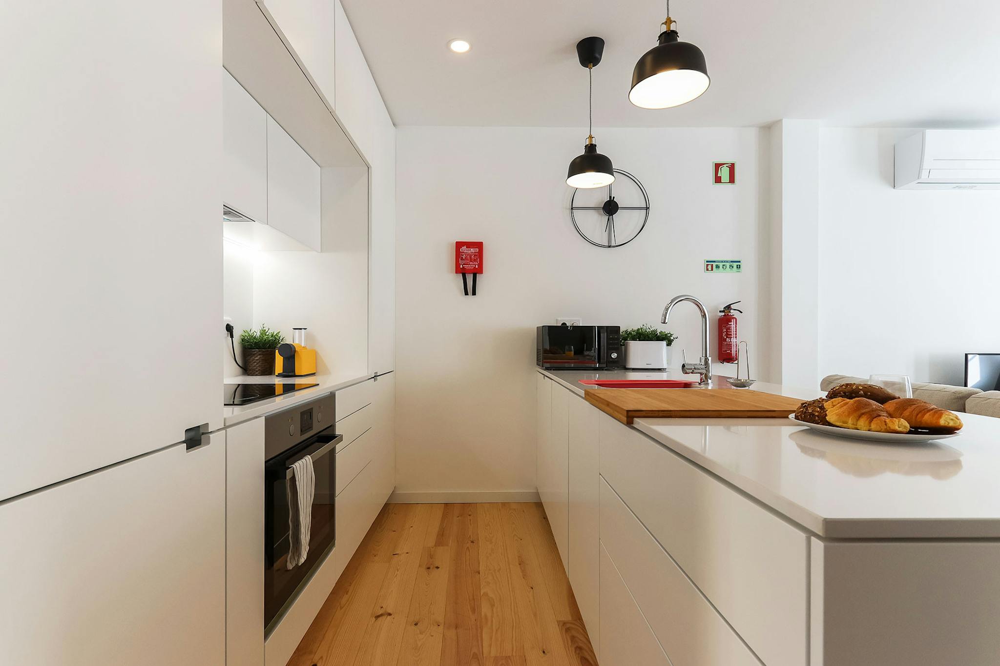 The apartment in Lisbon has 2 bedrooms and can accommodate 5 people. The apartment is 70 m2. The house is situated in a family-friendly neighborhood in the center of the city, close to the parliament and near tram and train stations. The accommodation is equipped with the following items: washing machine, iron, internet (Wi-Fi), hair dryer, central heating, air conditioning throughout the house, and satellite TV. In the induction open-plan kitchen, a refrigerator, microwave, oven, freezer, dishwasher, dishes/cutlery, kitchen utensils, coffee machine, toaster, and kettle are provided.