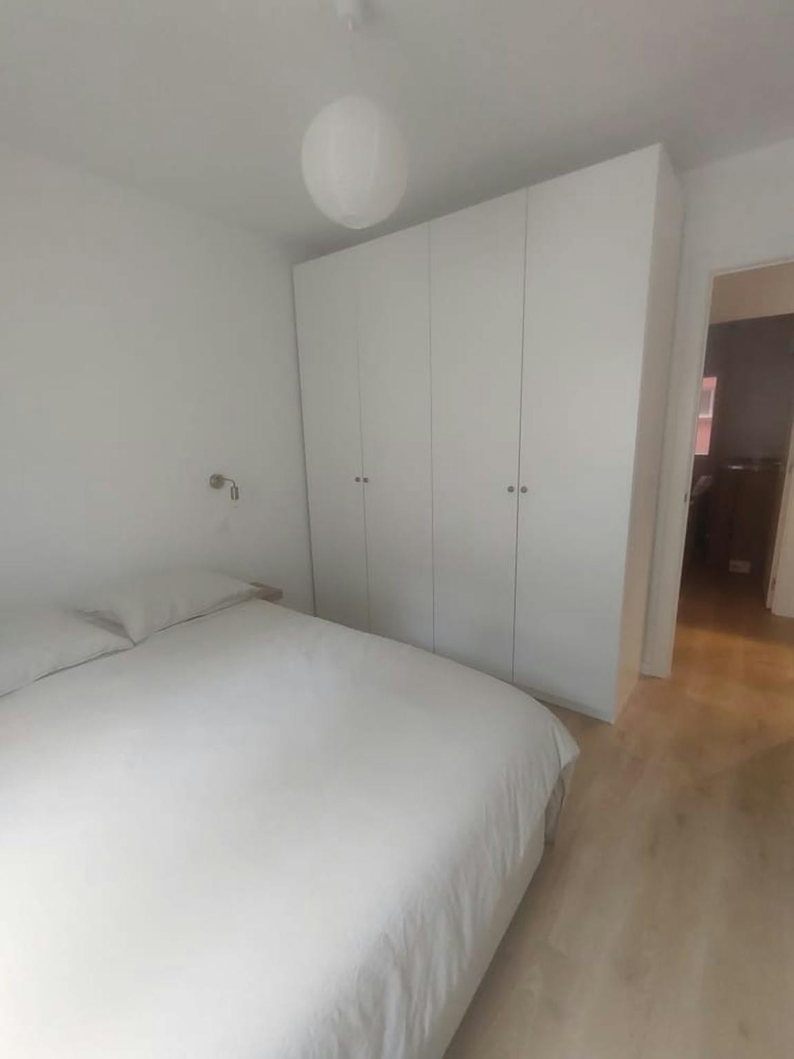 DORMITORIO 1: acogedora estancia con cama doble bastante cómodo y fantástica iluminación, suave ropa de cama, mega armario amplio, en ambiente luminoso y de calma perfecto para el descanso después de un día ajetreado en Madrid.