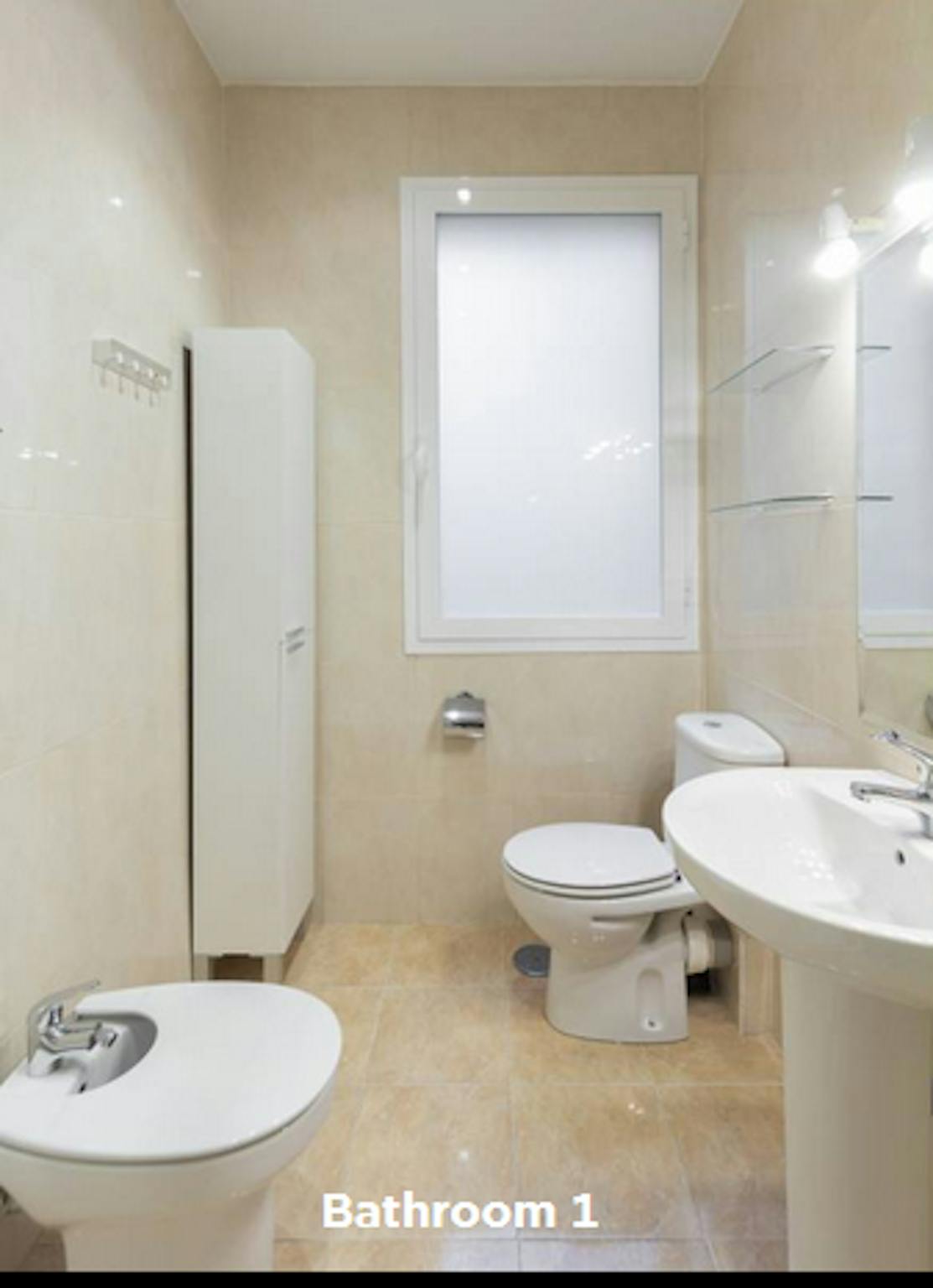 La habitación cuenta con cama matrimonio, zona de escritorio y armario. El apartamento cuenta con cocina completamente equipada y 2 baños compartidos por un máximo de 7 personas.