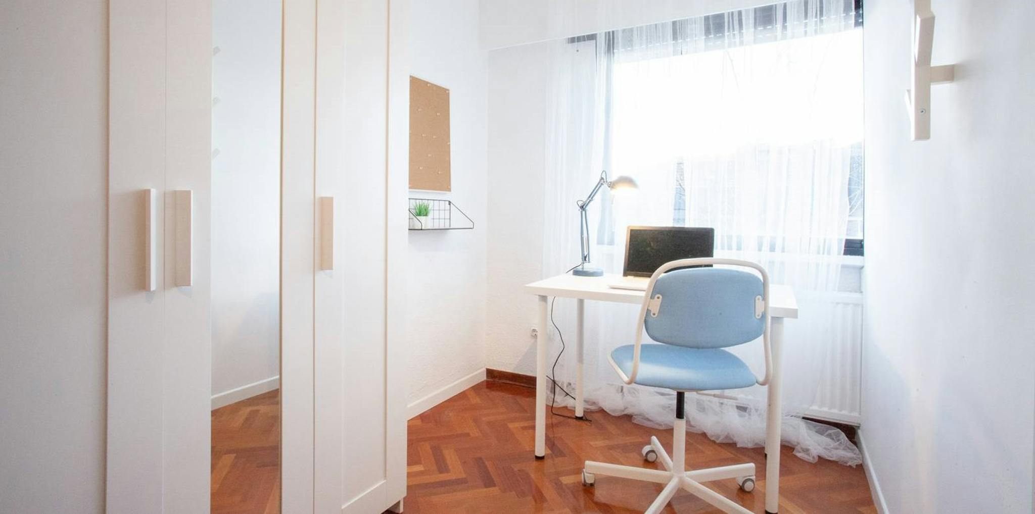 La habitación cuenta con cama individual, zona de escritorio y armario. El apartamento cuenta con cocina completamente equipada, 2 baños y 1 aseo compartidos por un máximo de 10 personas.