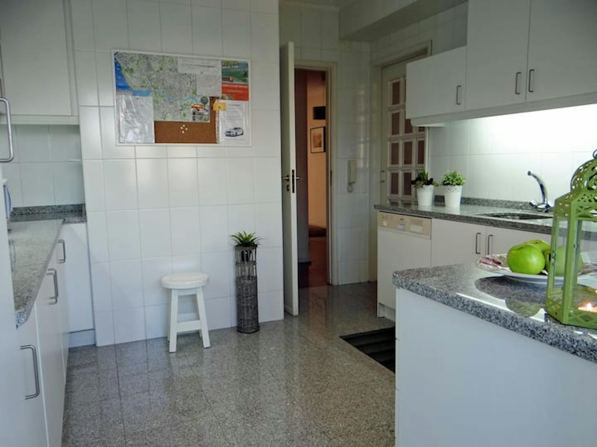 Apartment near the Norteshopping and the metro station “Estádio do Mar”, Matosinhos, Portugal, with 125 m2, with a big living and dining room, 2 bedroom, fully equipped kitchen, 2 bathroom. Central heating, Internet with Wi-Fi, TV flat-screen with cable.