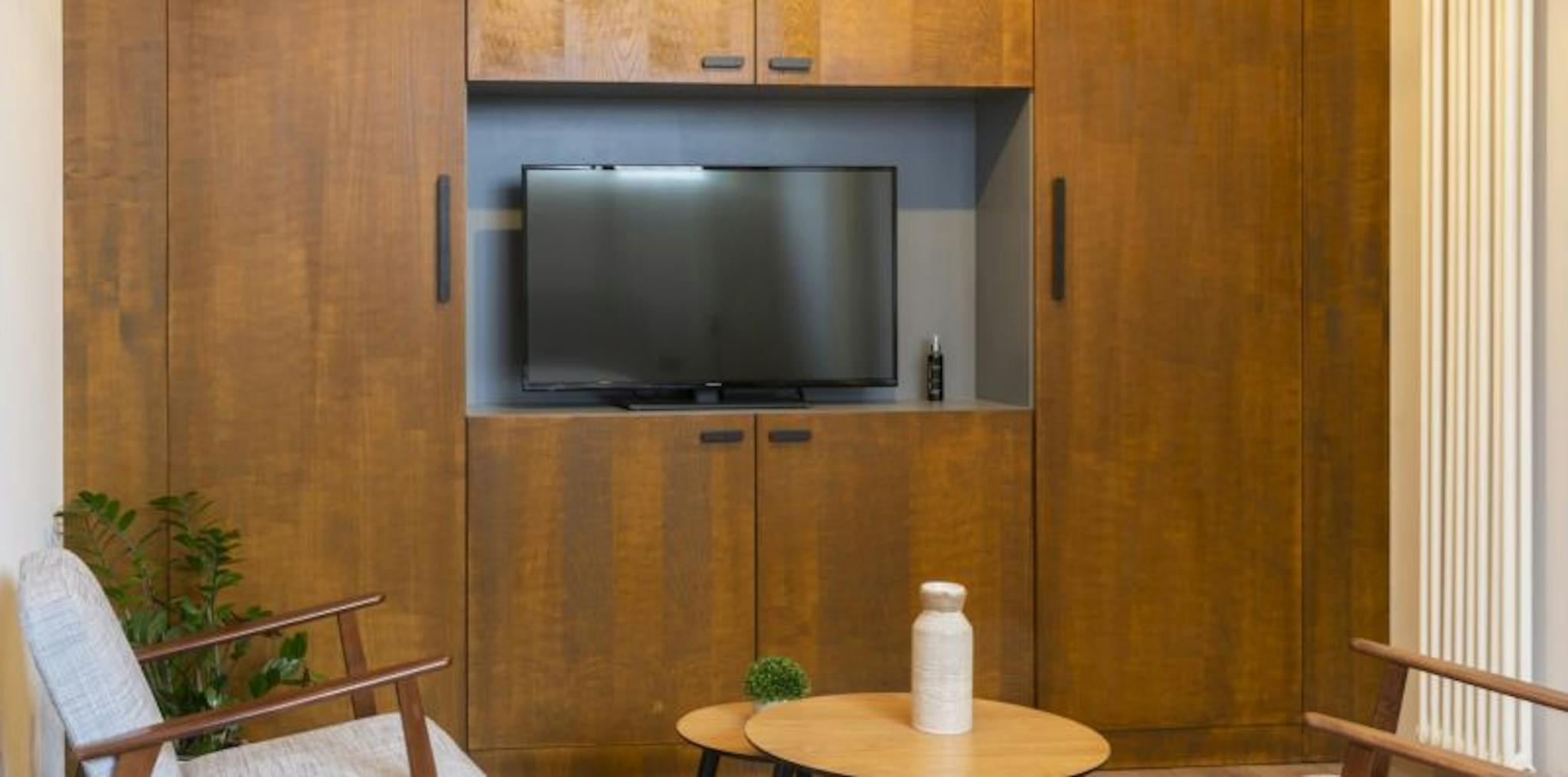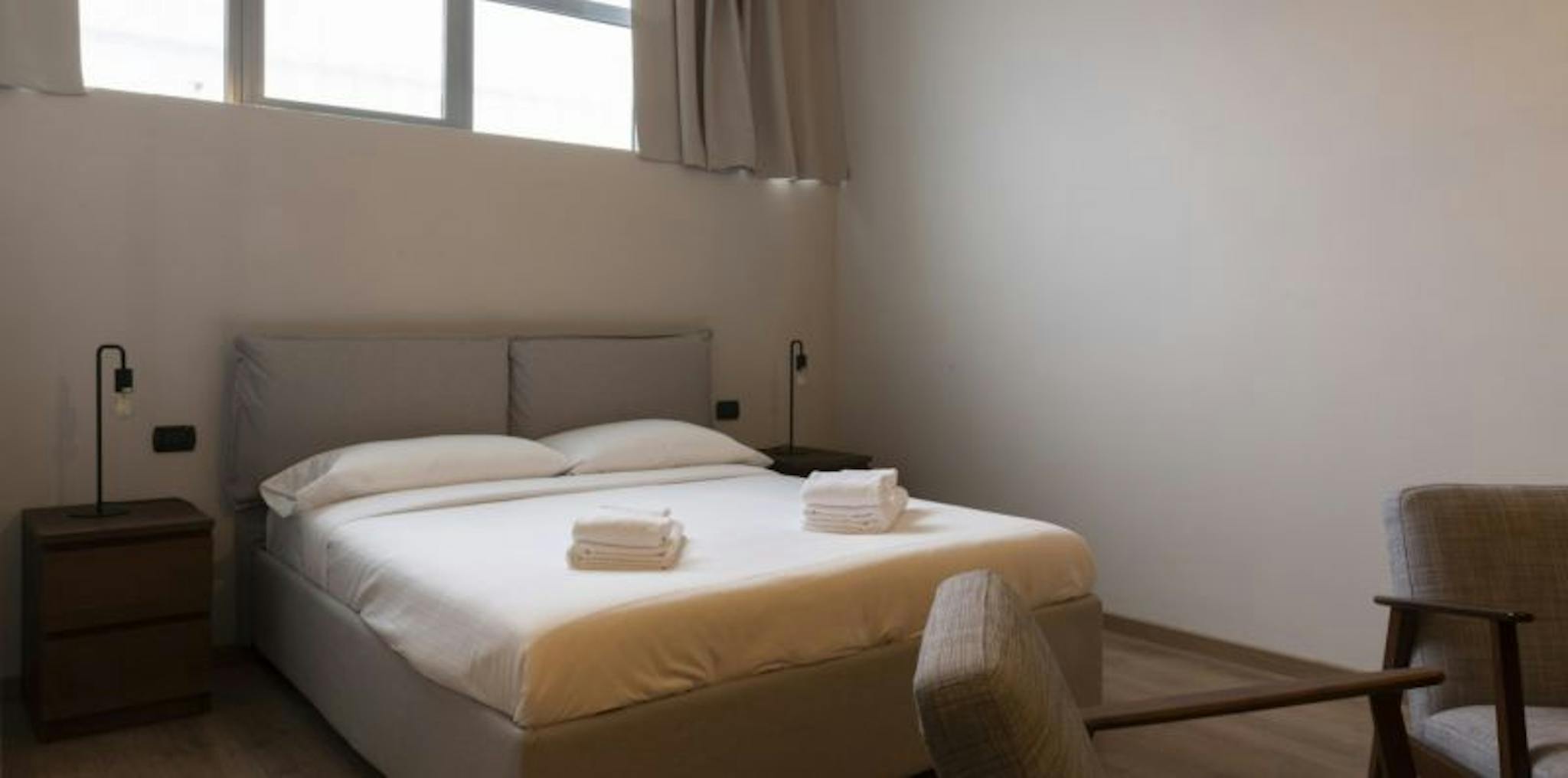 The apartment is air-conditioned and has many amenities for pleasantly accommodating up to two adults. The kitchen is equipped with an induction stove, refrigerator, microwave, dishwasher, toaster, kettle, dishes, pots and pans. The living area consists of a large table, which can be used both to eat meals and as a workstation, two comfortable armchairs, a 55 ”smart TV connected to the Internet so that you can always follow your favorite TV series by connecting to streaming platforms (Netflix, Amazon Prime Video). A beautiful double bed and a very large wardrobe complete the sleeping area.
