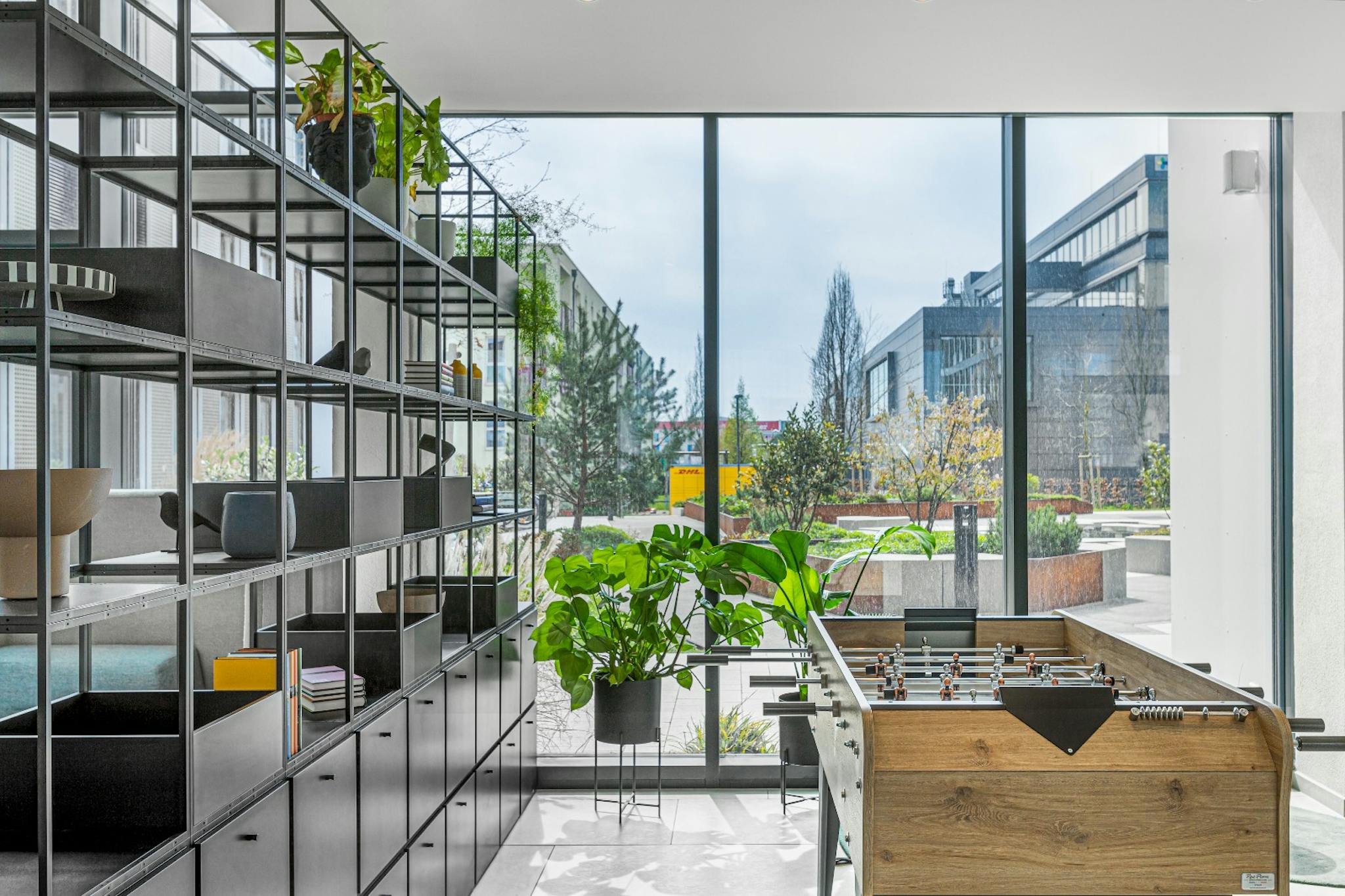 Das Gebäude verfügt über einen Concierge Service, Gym mit einem hervorragenden Ausblick und eine Autogarage. Die großräumige Lobby bietet ausreichend Platz und die richtige Atmosphäre für Kreativität und Produktivität beim Arbeiten und Lernen.