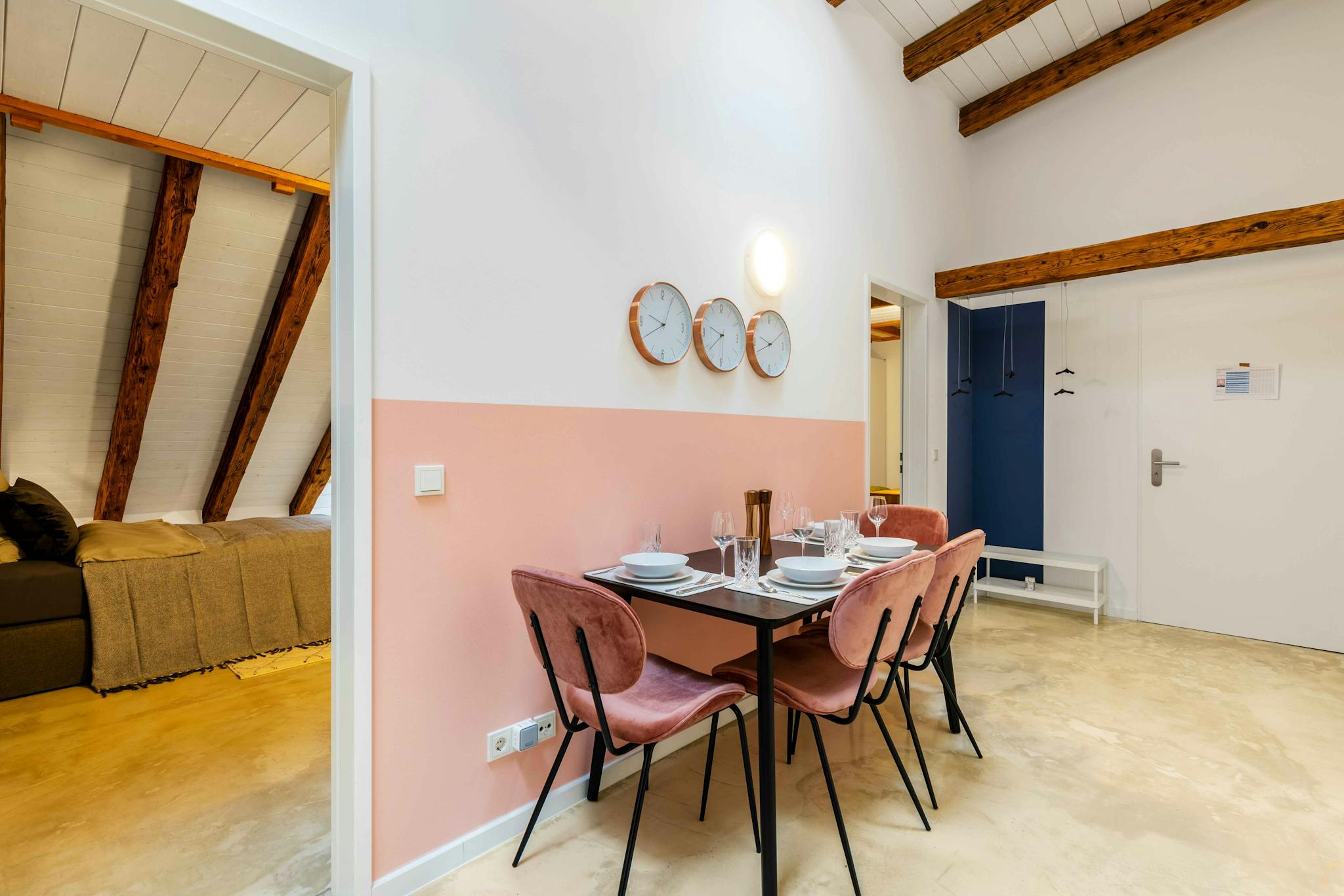 Live in the heart of Munich with a nice view over the beautiful skyline of the city! Just across the street is the famous Viktualienmarkt and the city centre with the most exclusive clubs, bars and restaurants of Munich. The apartment in a totally restored 19th century building offers a nice atmosphere with high ceilings and modern furniture.