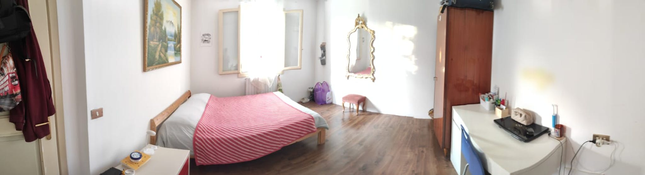Al primo piano troviamo la stanza libera,altre due stanze occupate da ragazze studentesse e una bagno in comune.