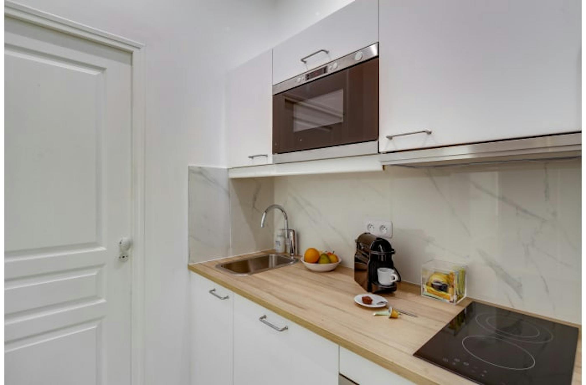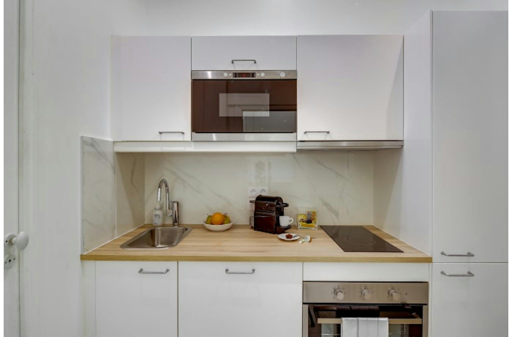 Art lovers will appreciate the carefully chosen tableaus and the floral wall prints in this upscale space. If you enjoy shopping for fresh Parisian products and then making your own meal, the fully-equipped kitchen has everything you need. High-quality mattresses sleep up to 5 guests in comfort and the plush, modern furniture is perfect for relaxing after a long day of exploring the local sights. Premium amenities include free WiFi, cable TV, hotel beds and linens, luxury toiletries, and a Nespresso machine.